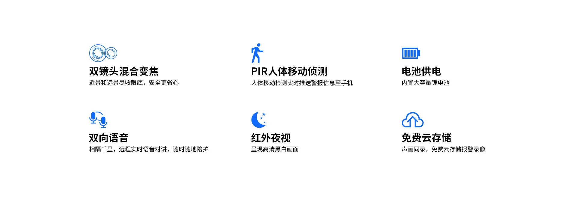 | 报警 | 报警检测 | 支持人体移动侦测,PIR红外人体检测 |