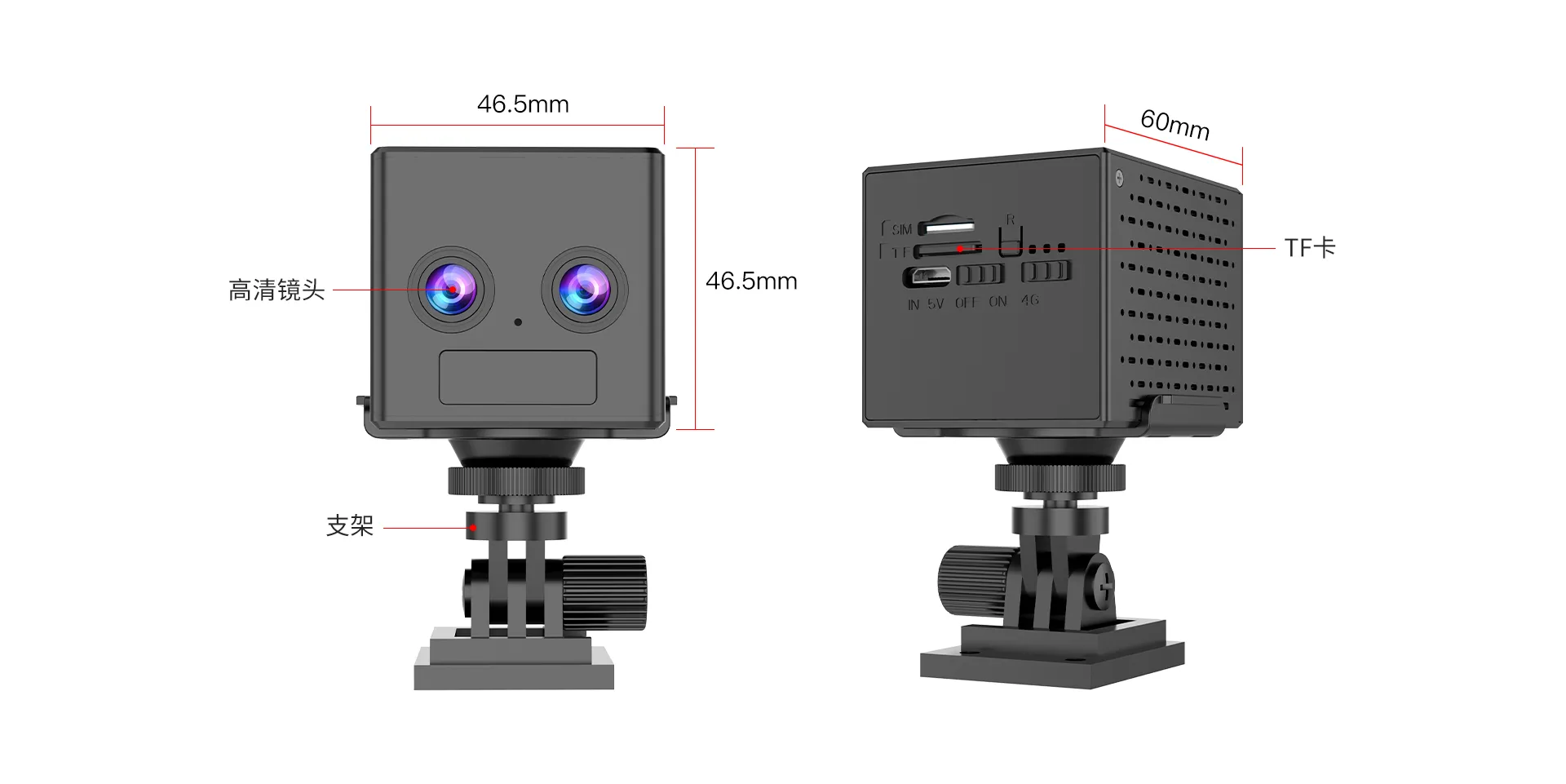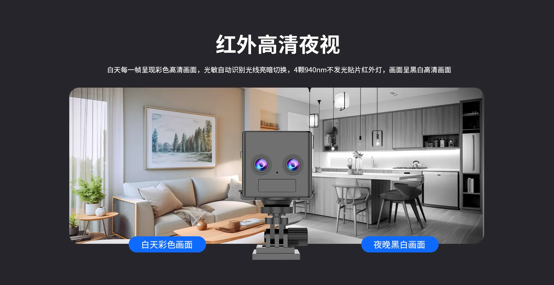 | 视频 | 夜视 | 黑白夜视,光敏自动识别光线亮暗切换,6颗940nm不发光贴片红外灯,照射距离3~5米 |