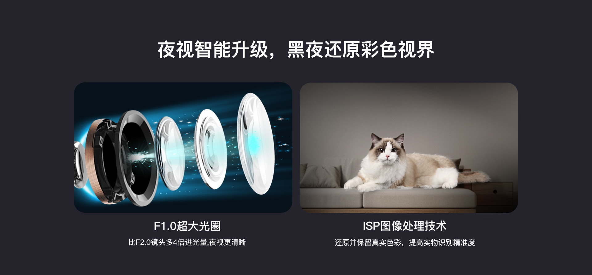 | ✮F1.0超大光圈,多4倍进光量,夜视更清晰 | ✮F1.0超大光圈,多4倍进光量,夜视更清晰 | |||||