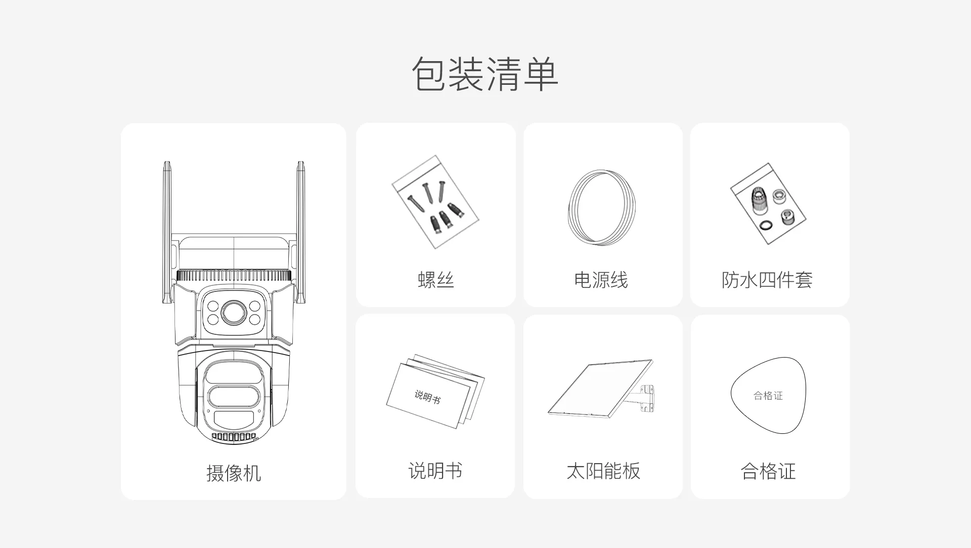 | 包装清单 | 主机*1,说明书*1,太阳能板*1,太阳能板支架*1 | |