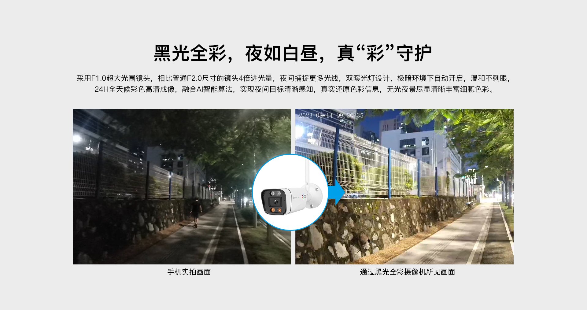 | ✮黑光全彩,无补光灯也呈现彩色画面 | ||