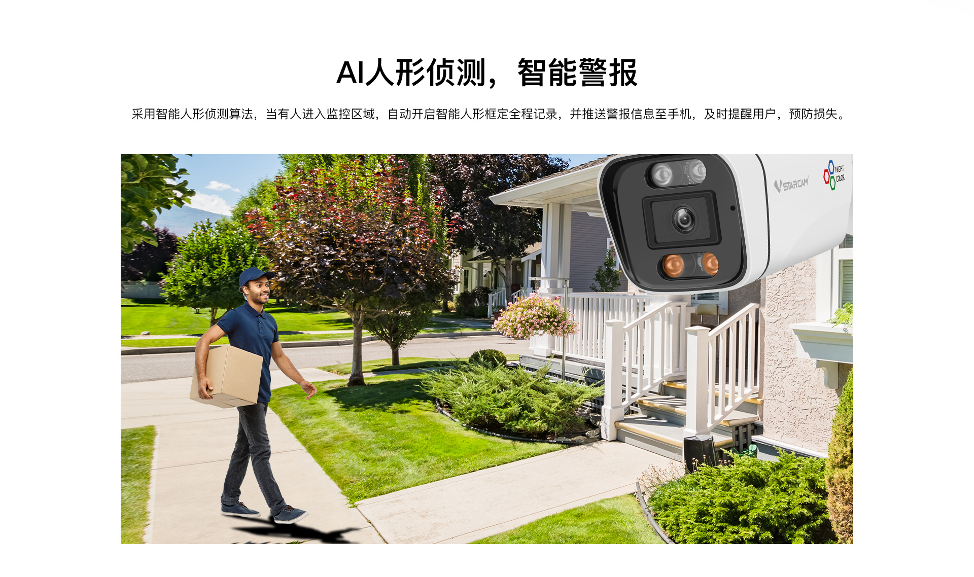 | 报警 | 报警检测 | 支持移动侦测,人形侦测,人形框定,警笛报警音,区域侦测 |