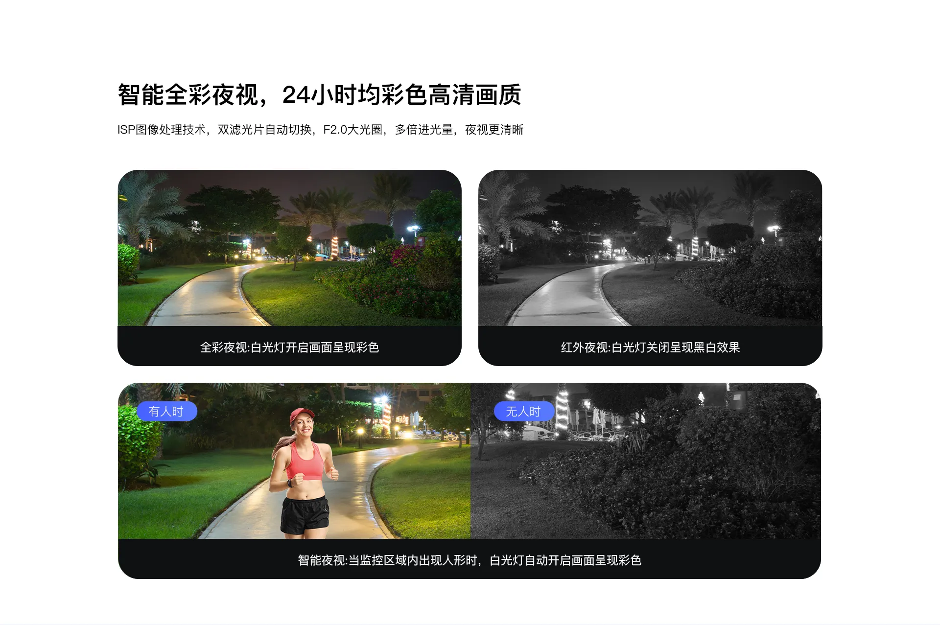 | 报警 | 报警检测 | 支持移动侦测,人形侦测,人形框定,区域侦测,人形追踪,警笛声报警 |