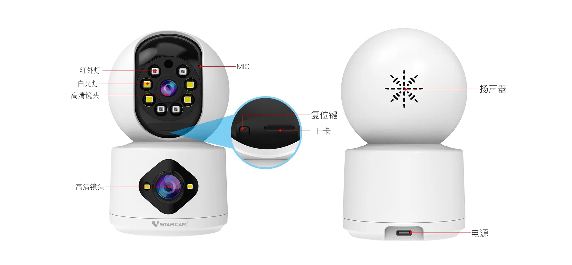 | ✮双芯灯板,支持全彩夜视 | ||