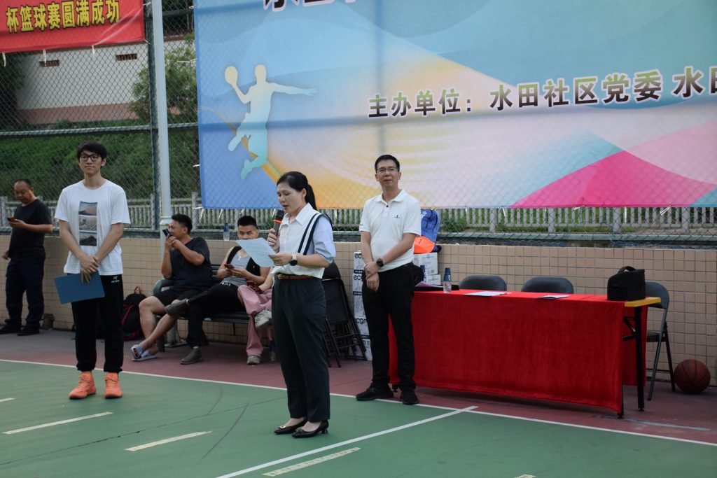 首先是水田社区党组书记和石岩街道副主任发表讲话,简洁明了地介绍篮球比赛事项,并宣布第一届“水田”杯篮球比赛活动正式开幕!