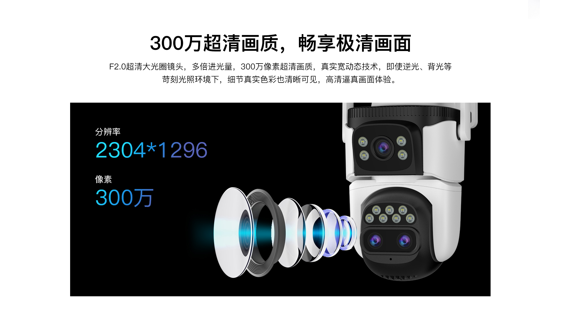| ✮F2.0大光圈,多倍进光量,夜视更清晰 | ||