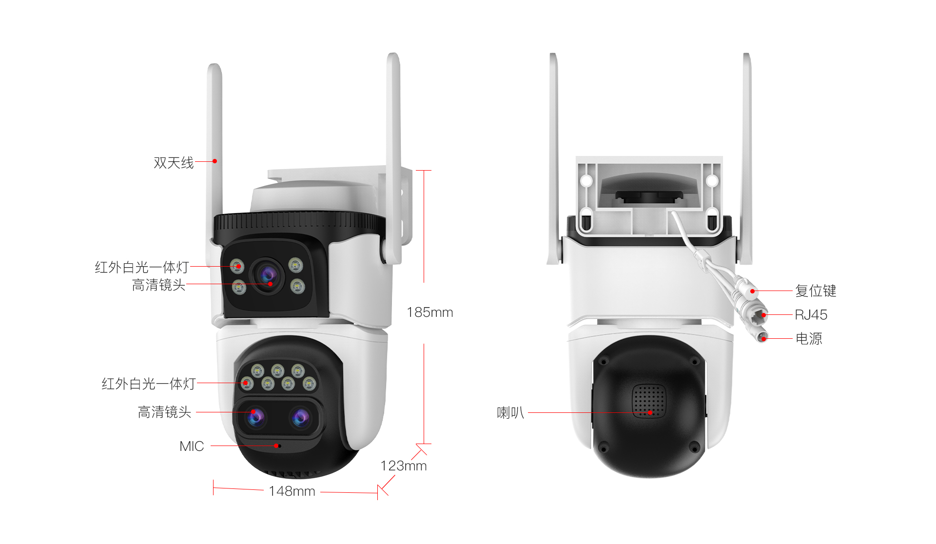 | 报警 | 报警检测 | 支持移动侦测,人形侦测,人形框定,区域侦测,人形追踪,警笛声报警 |