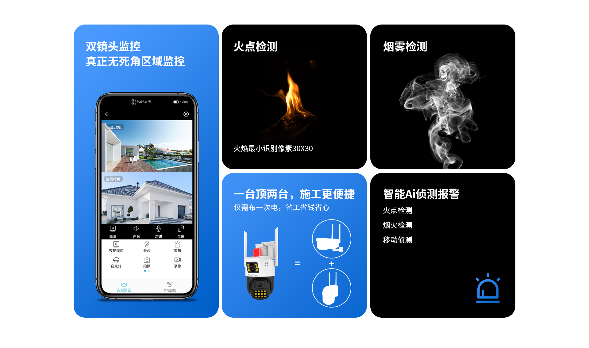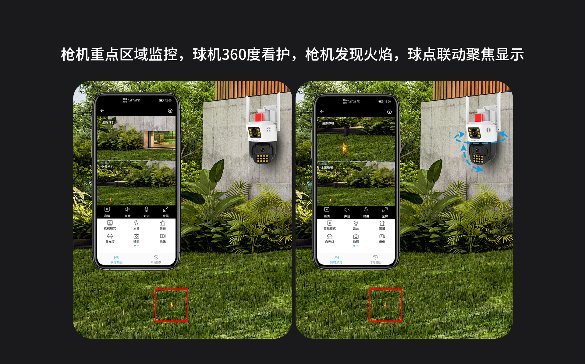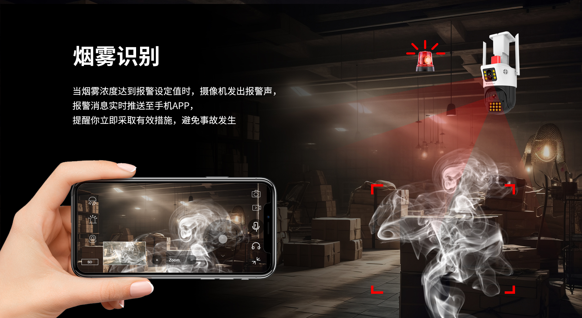 | 烟火检测 | 明火及烟雾检测框定,直接定位火点位置; | |