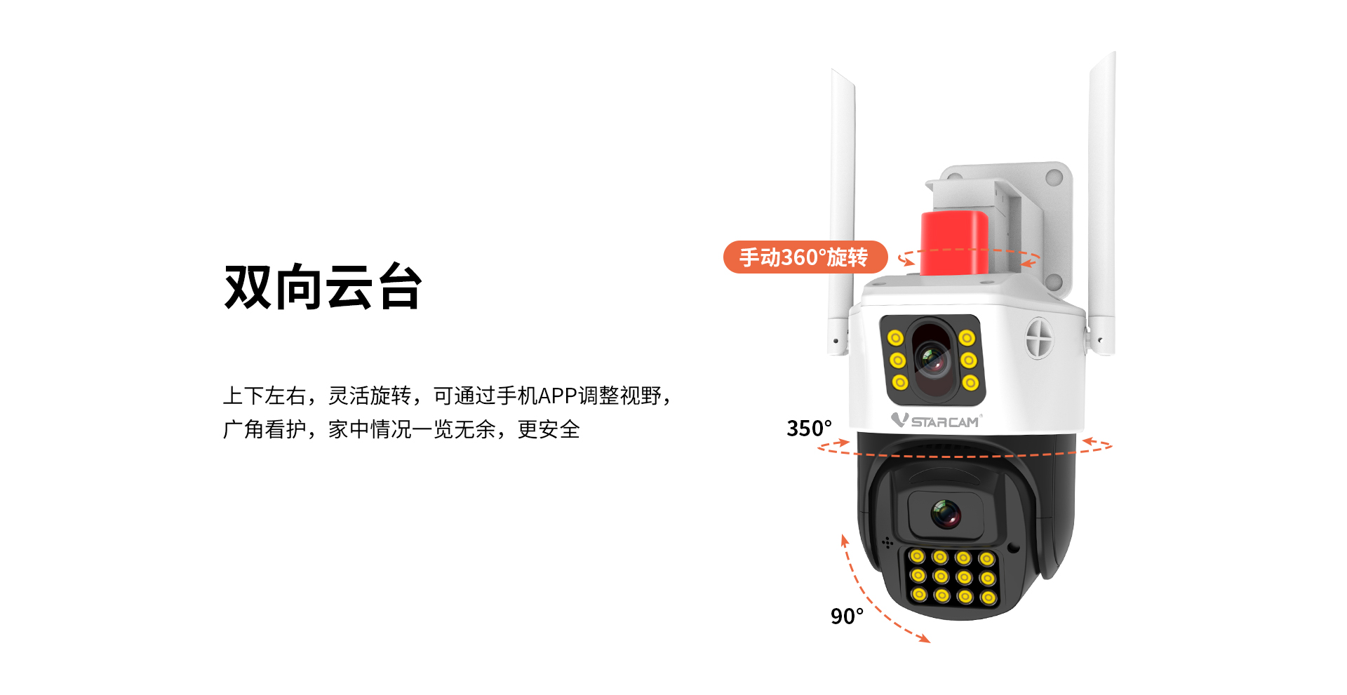 | 云台 | 旋转角度 | 水平350°/垂直90°,安装直接可以360旋转安装 |