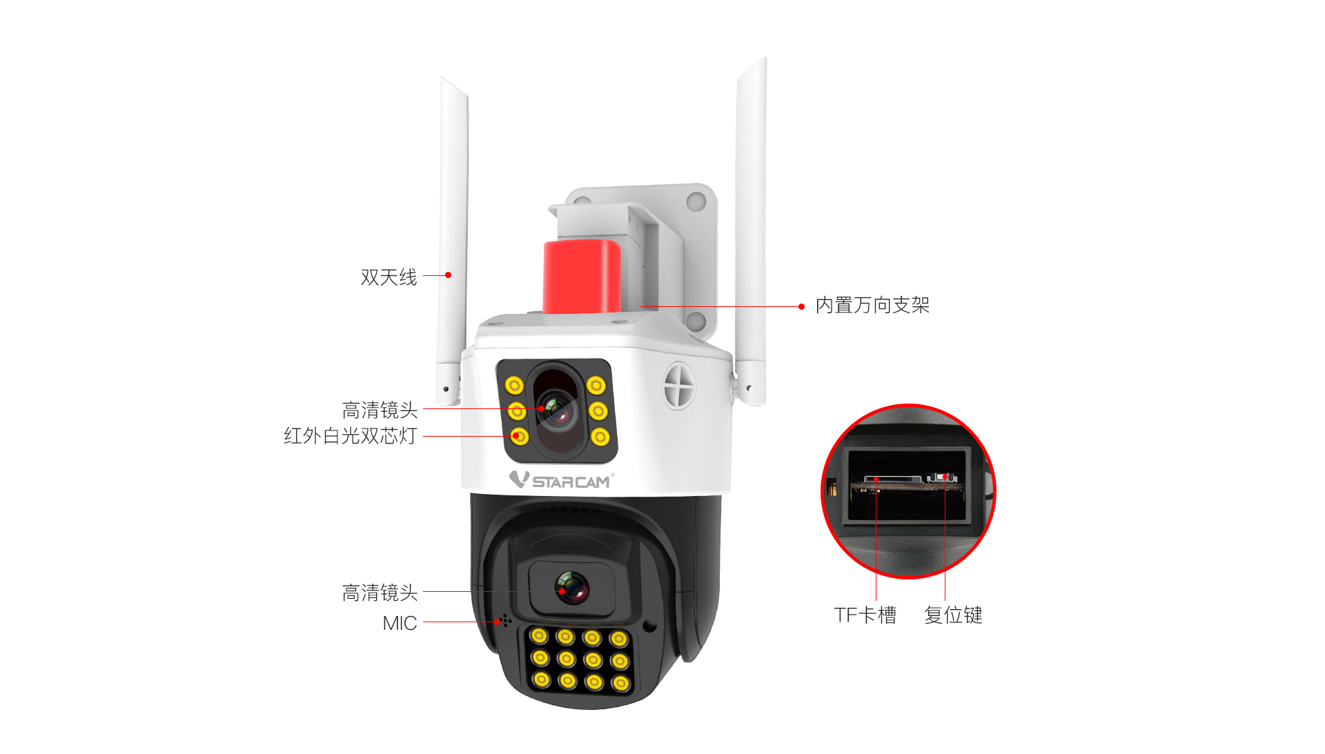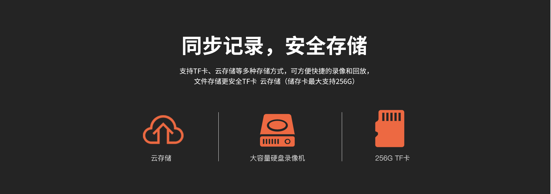 | 存储 | 存储功能 | 支持T-Flash卡(最高支持256GB);云存储;NVR;NAS |