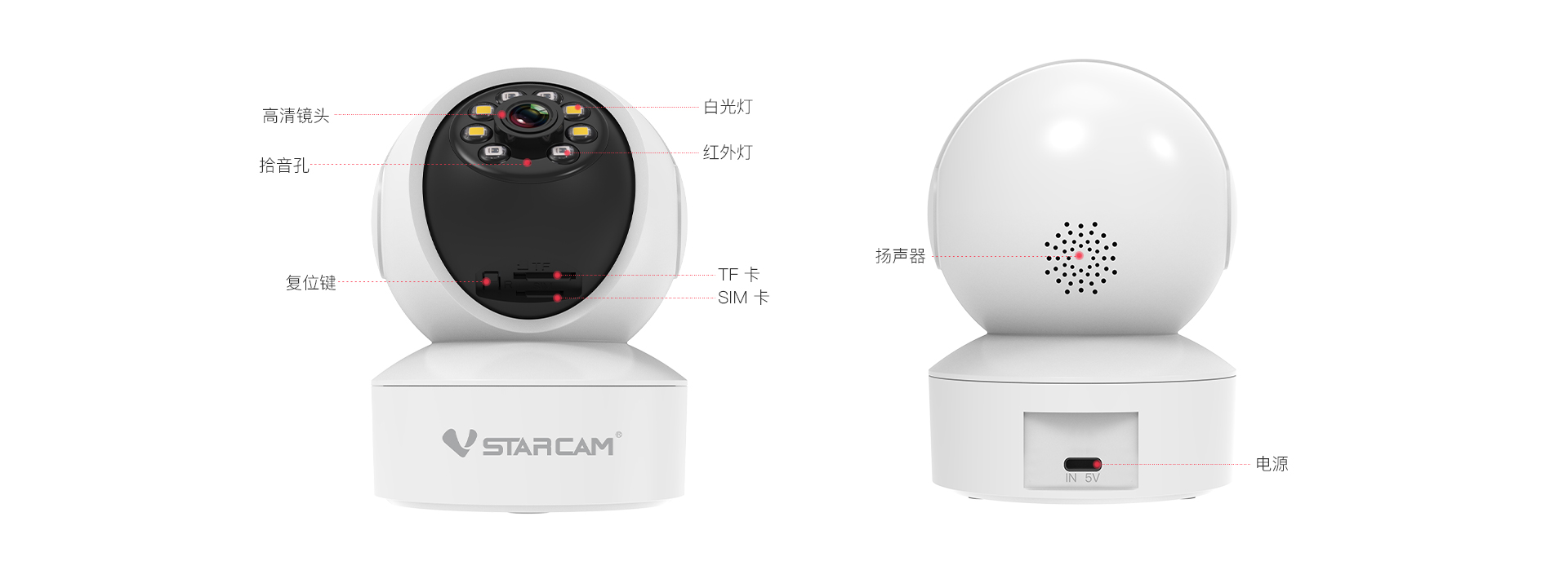 | 功耗 | 额定功率:2.7W (红外灯开启)/最大功率:6.8W (云台开启) | |