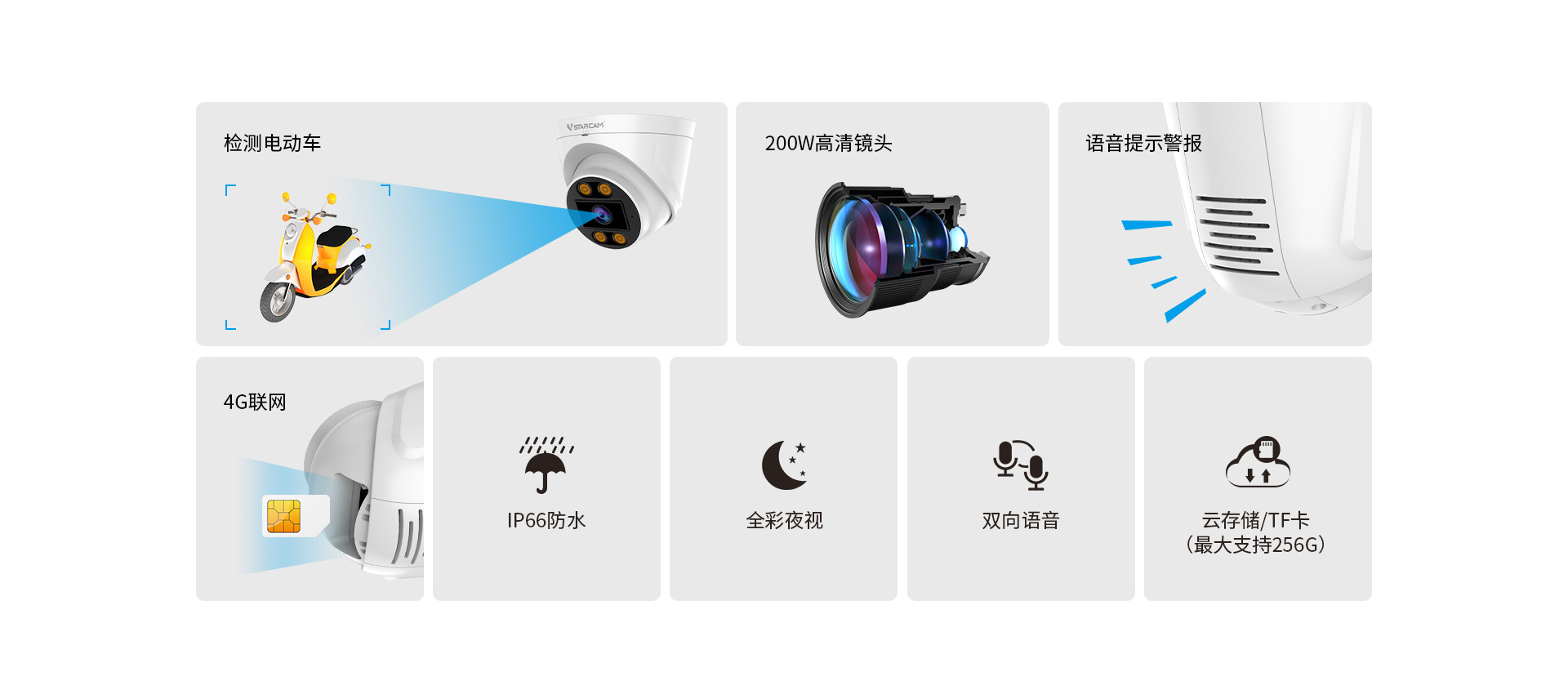 | 报警检测 | 支持移动侦测,电动车检测 | |
