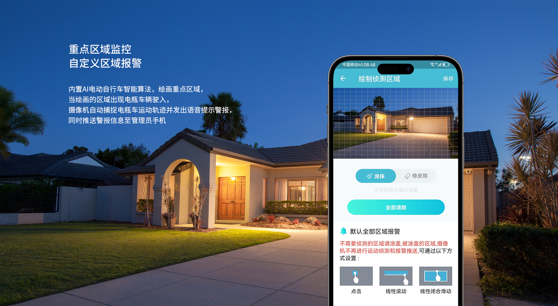 | 区域检测 | 自由涂抹选取,只监控用户关心的区域 | |