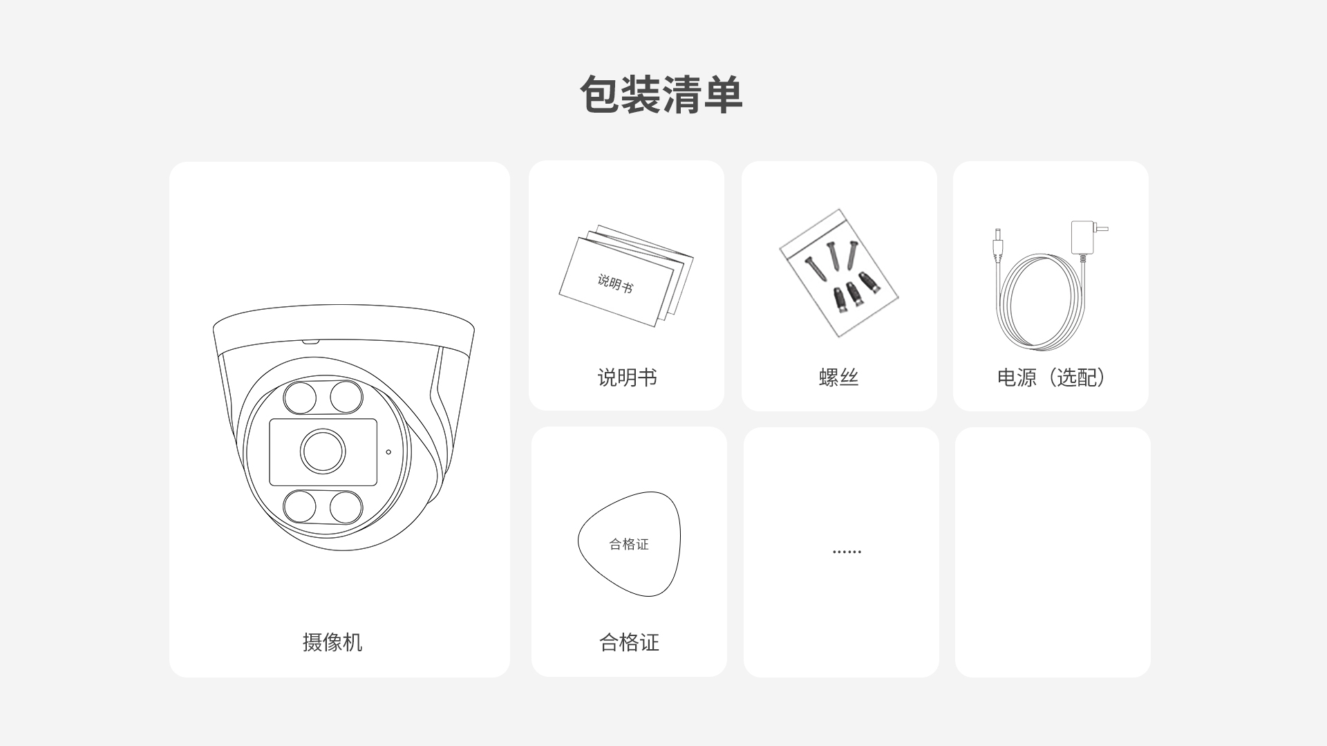 | 包装清单 | 摄像机、螺丝包,说明书 | |