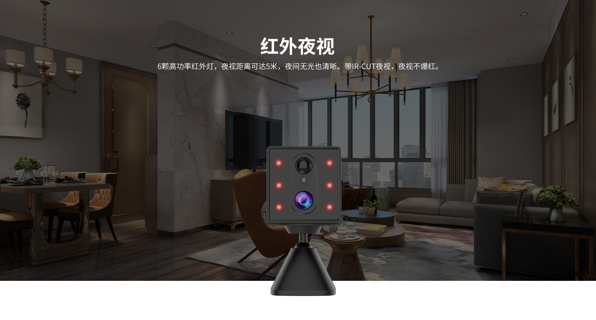 黑白夜视,光敏自动识别光线切换,8颗940nm不发光贴片红外灯,照射距离3~5米 |