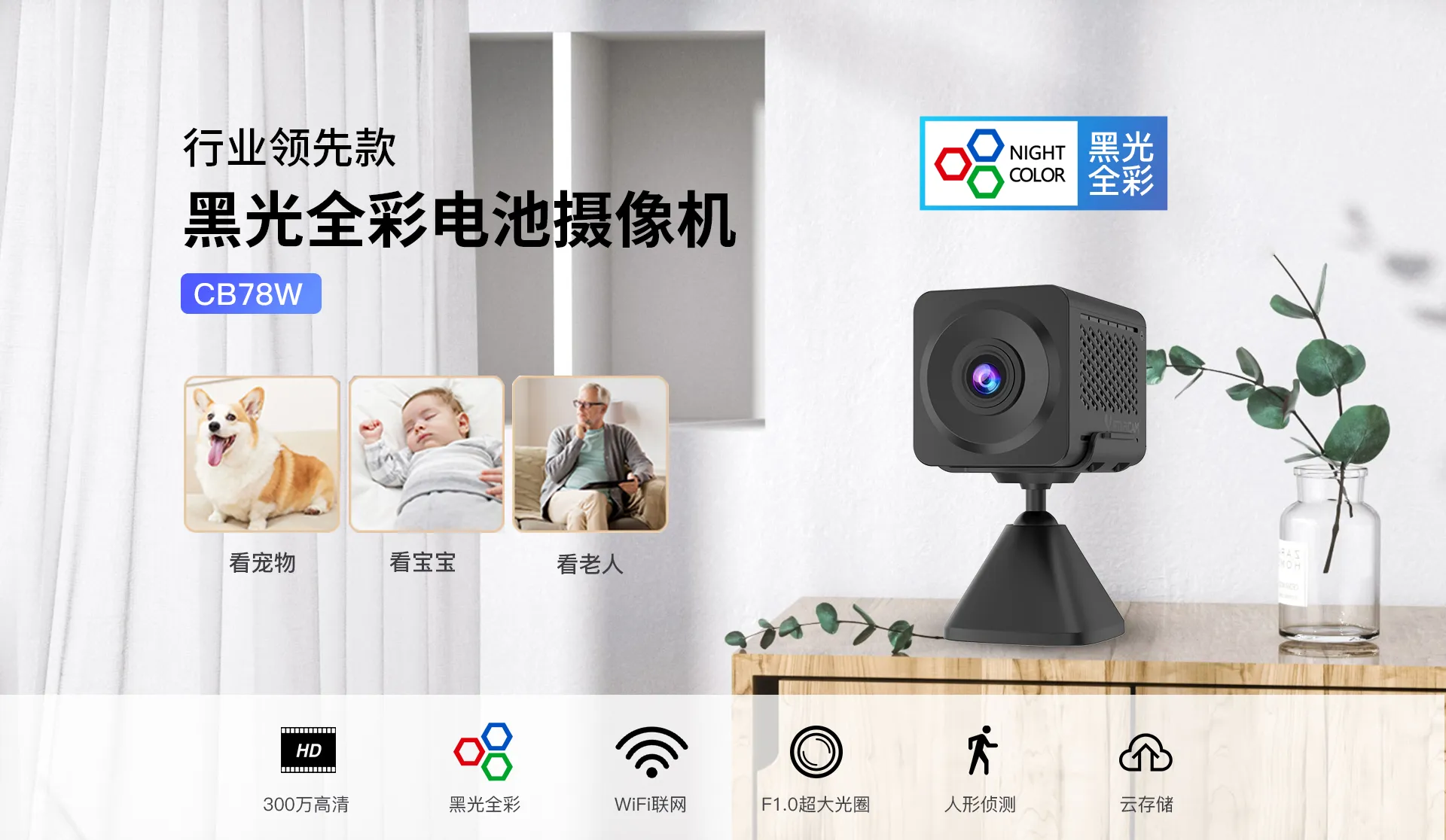 | ✮黑光全彩,无补光灯也呈现彩色画面 | ||