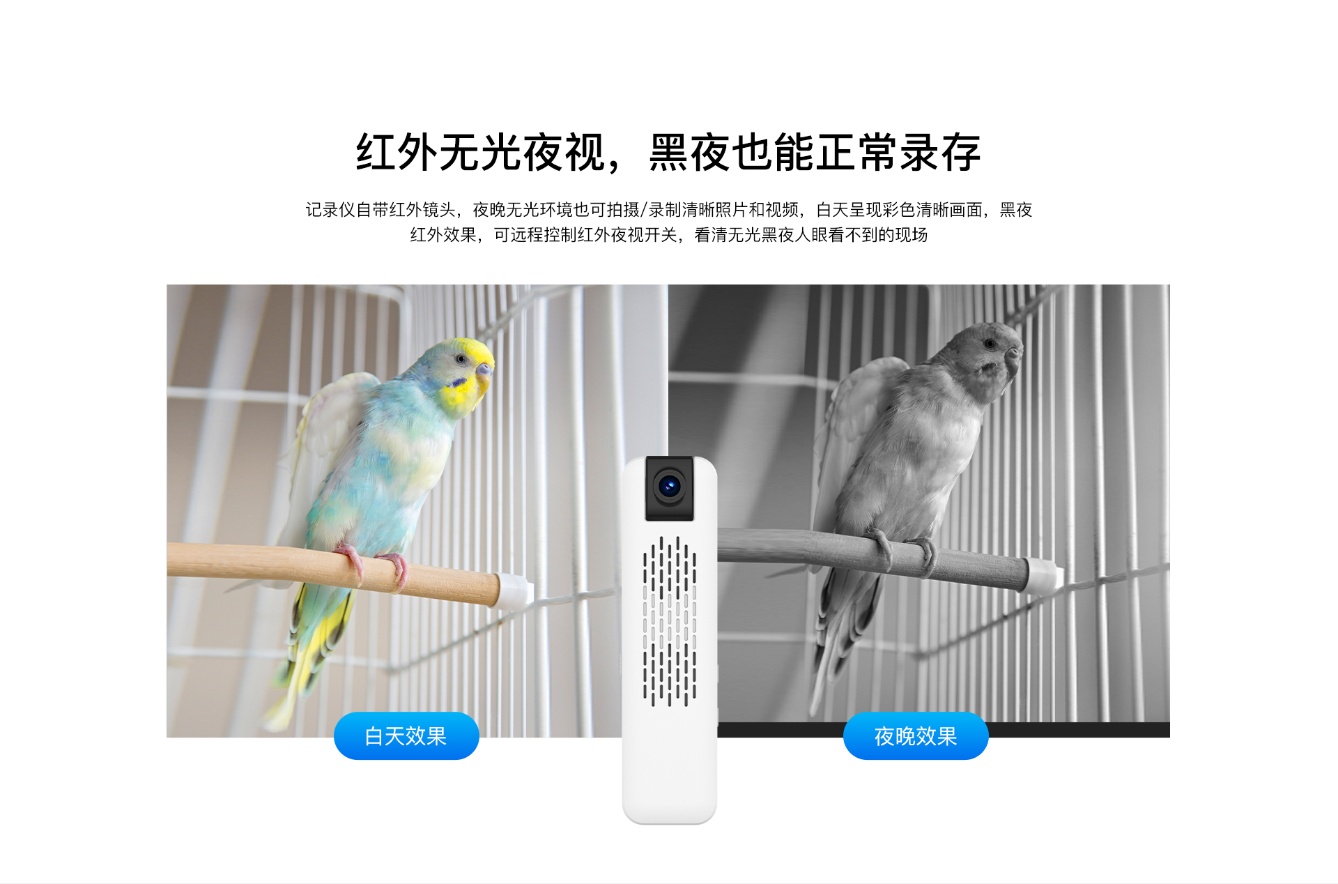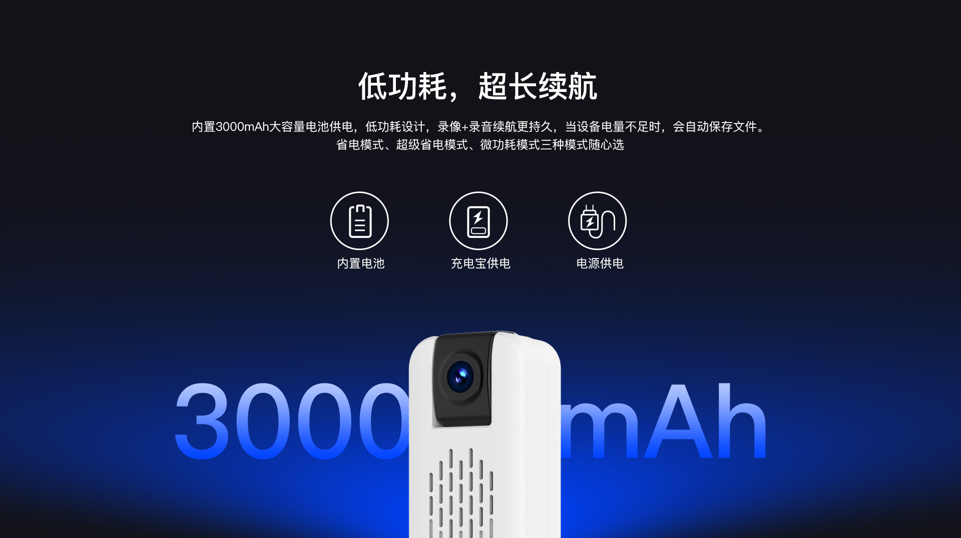 | ✮ 内置3000mAh电池供电,持久续航,录音、录像二合一,声音画面同步 | ||