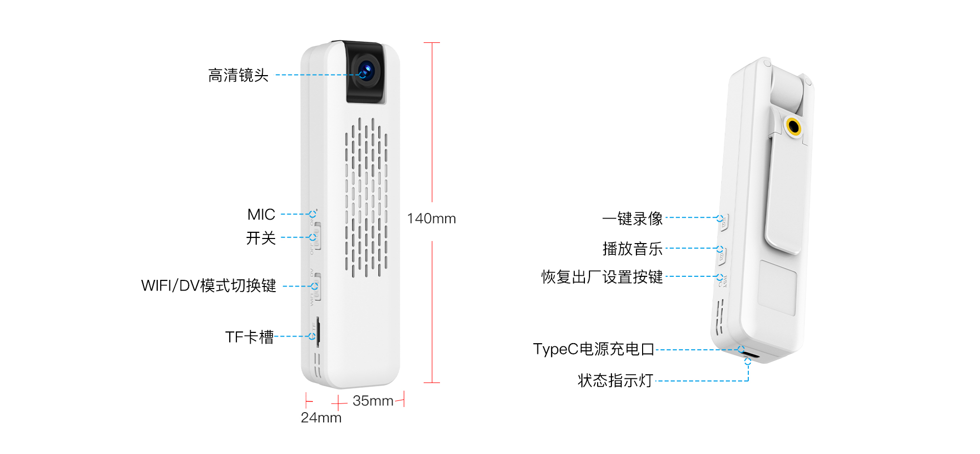 | 录像按键 | 短按暂停录像并保存 | |