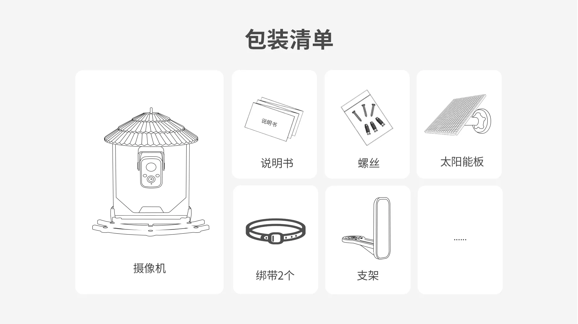 | 包装清单 | 主机*1,支架*1,TYPE-C充电线 *1,说明书*1,太阳能板*1,太阳能板支架*1 ,绑带*2 | |