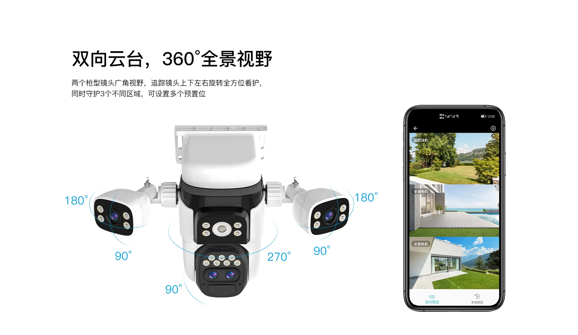 | 云台 | 球机APP控制:水平270° 垂直90°度 ,枪机手动调节:水平180°,垂直90° | |