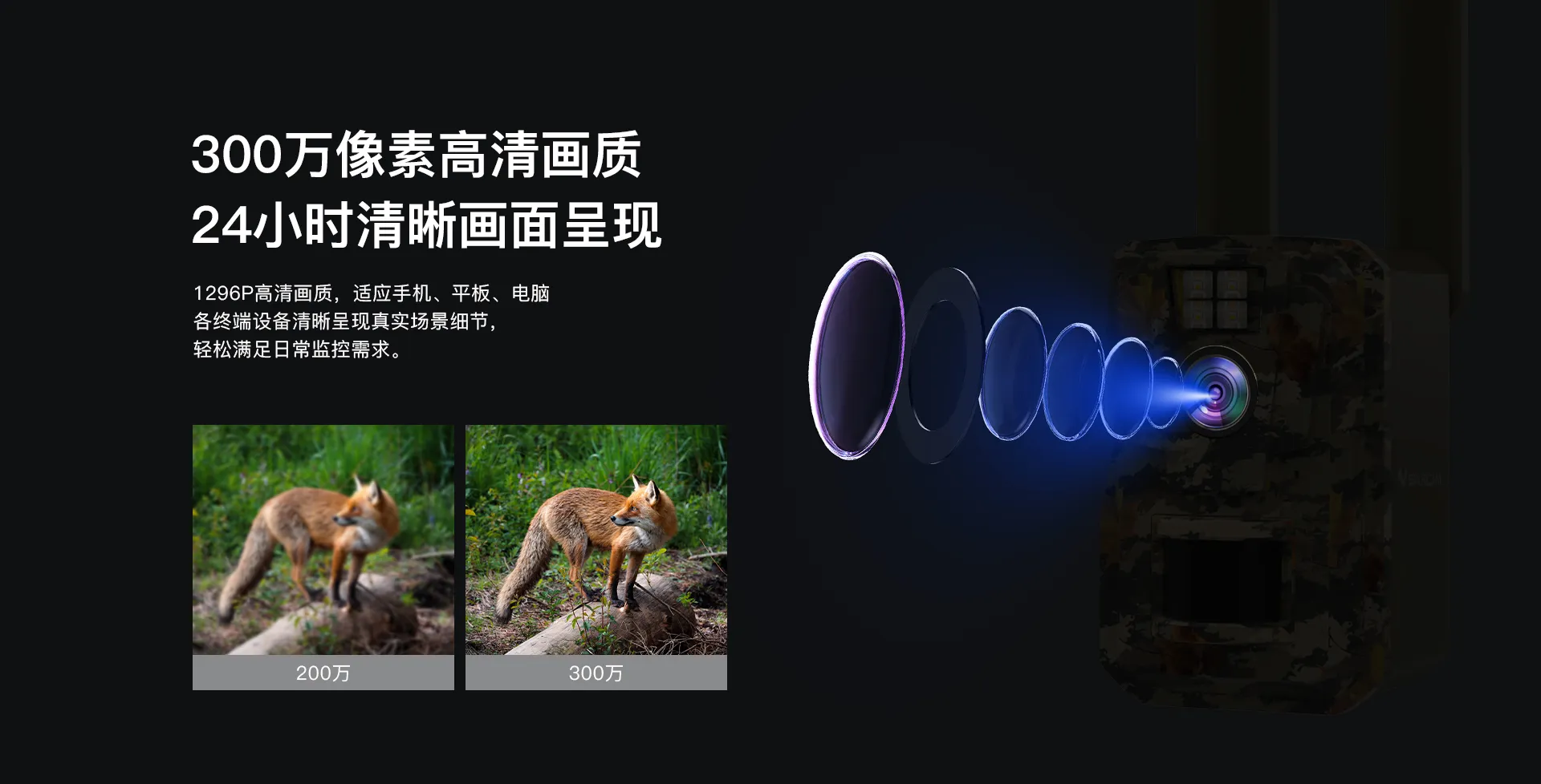 | 多码流 | 主码流:1296P/15fps 子码流:360P/15fps | |