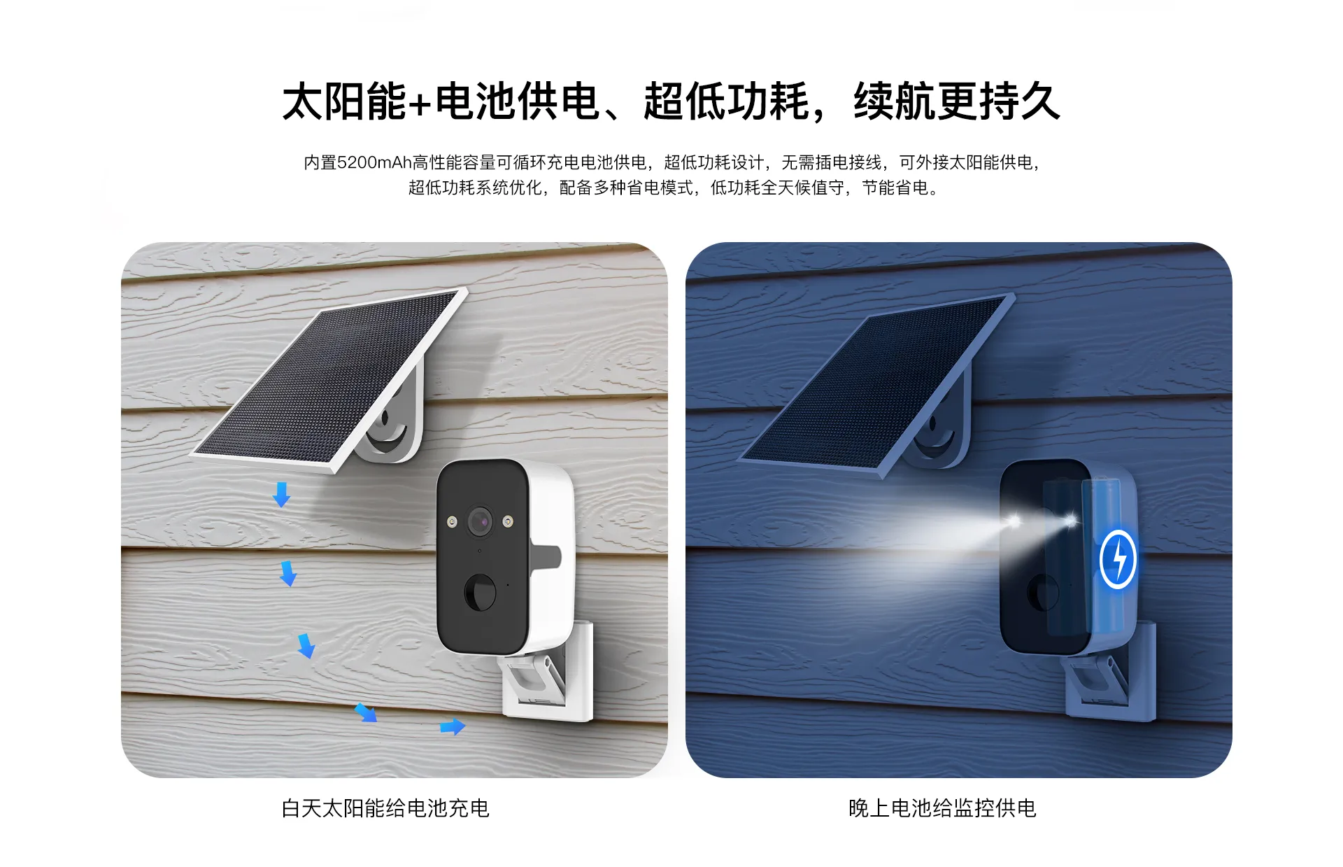 | ✮支持外接5V太阳能板,持续输送供电,设备不断电 |