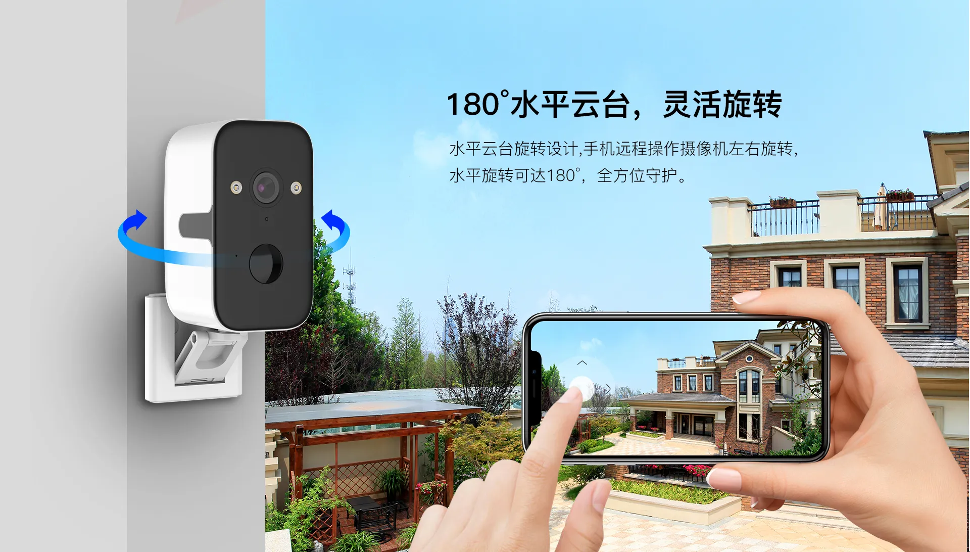 | ✮远程主动唤醒,双向语音对讲,180°灵活转动,全方位监控 |
