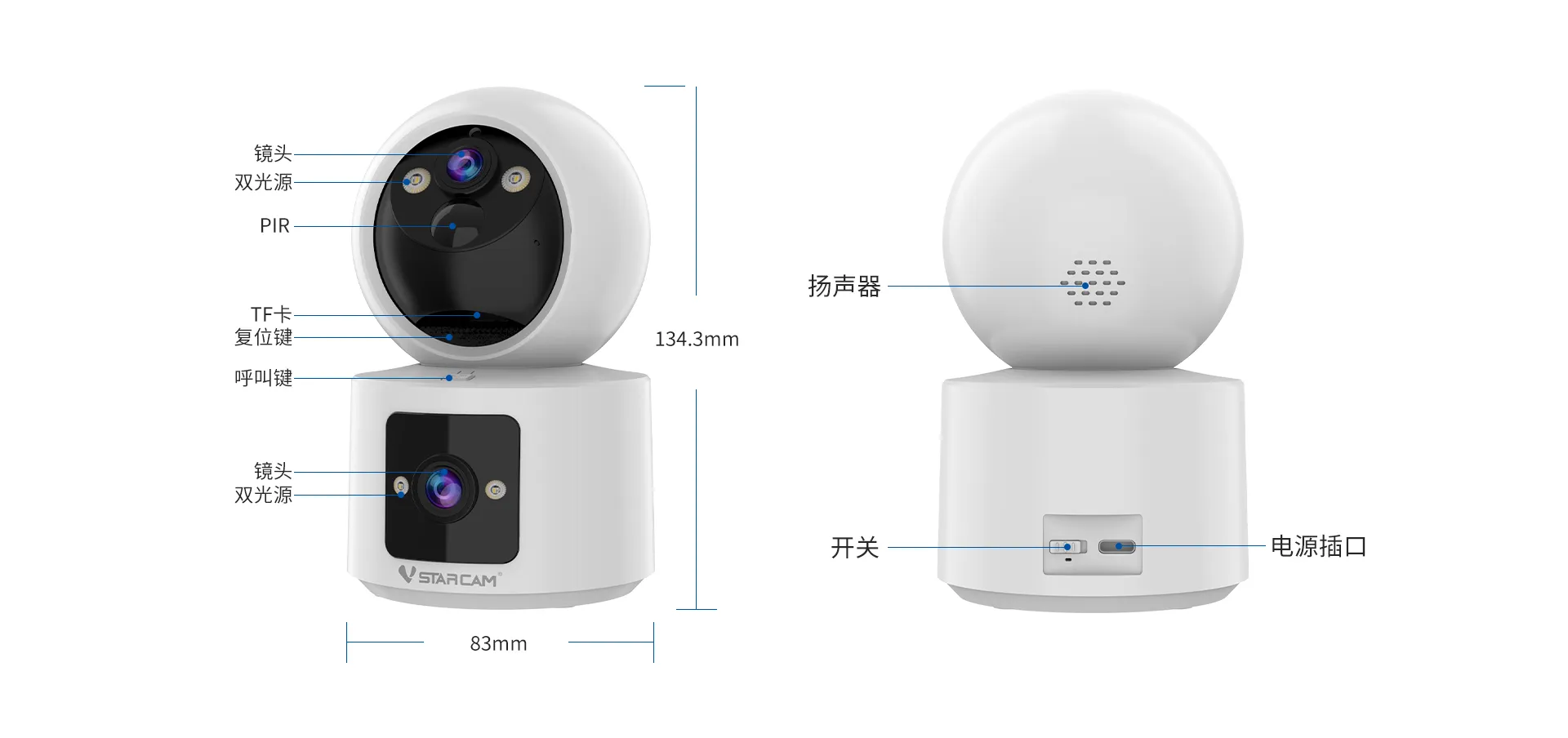 | 视频 | 夜视 | 全彩夜视,双光源,球头2红外+2白光灯,枪2红外+2白光灯 |