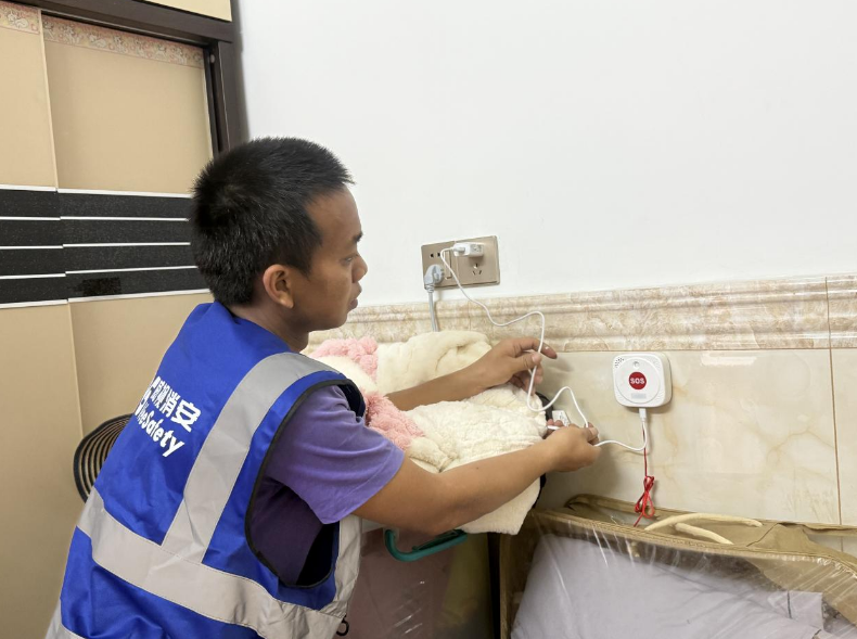 近日,石岩街道浪心社区党群服务中心联合小鹰视界集团子公司开展”科技助老·平安守护“行动,为辖区21位独居/高龄长者免费安装最新款”平安铃”——4G可视紧急拉绳报警器GE1,通过华体会物联技术构建居家安全防护网。