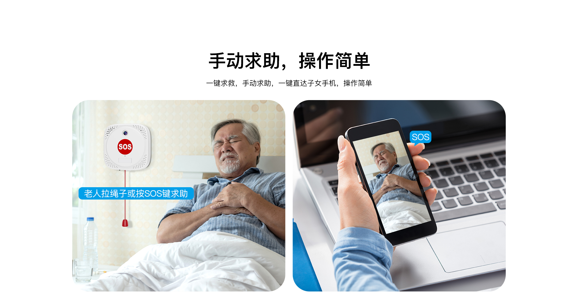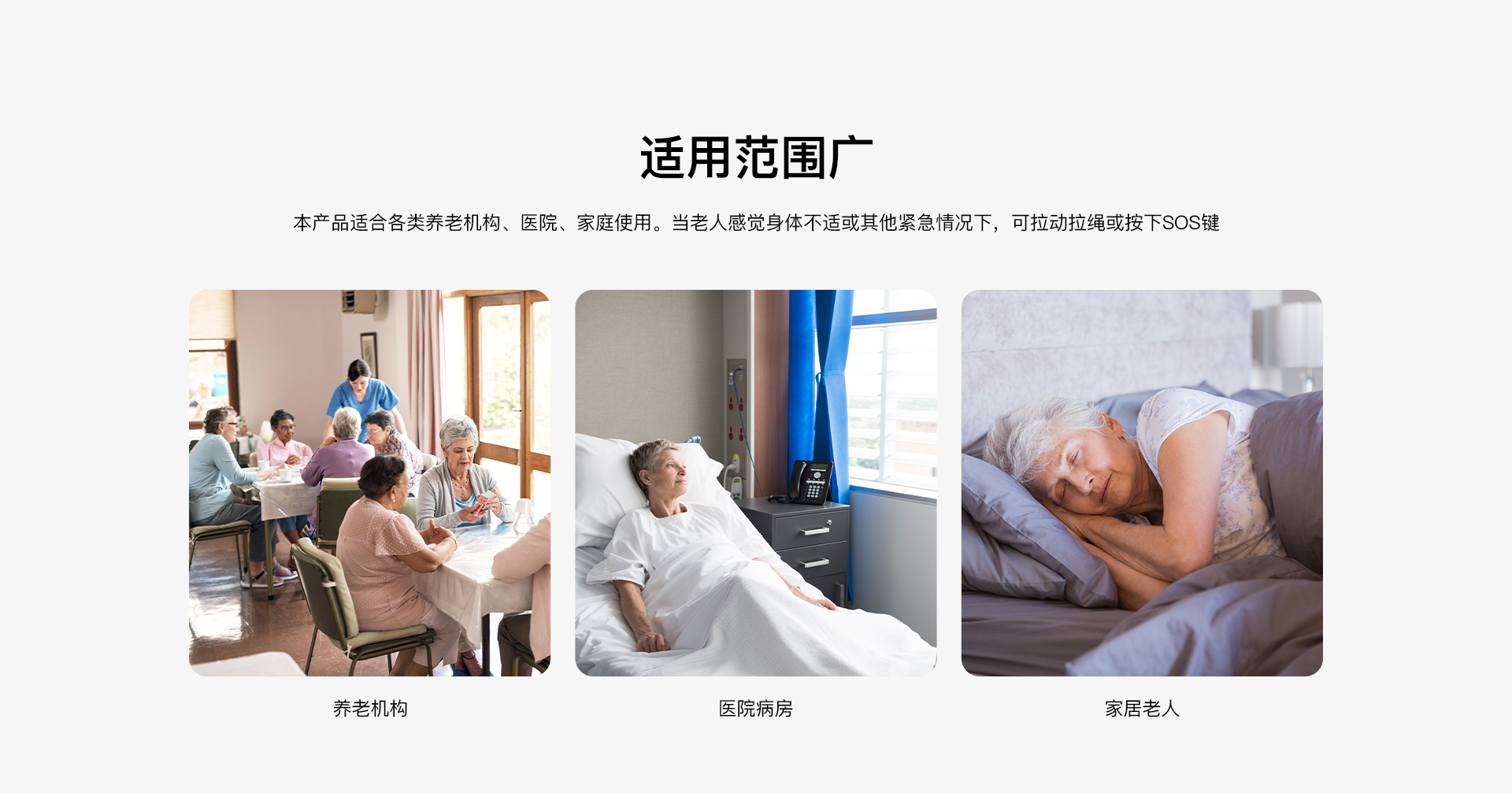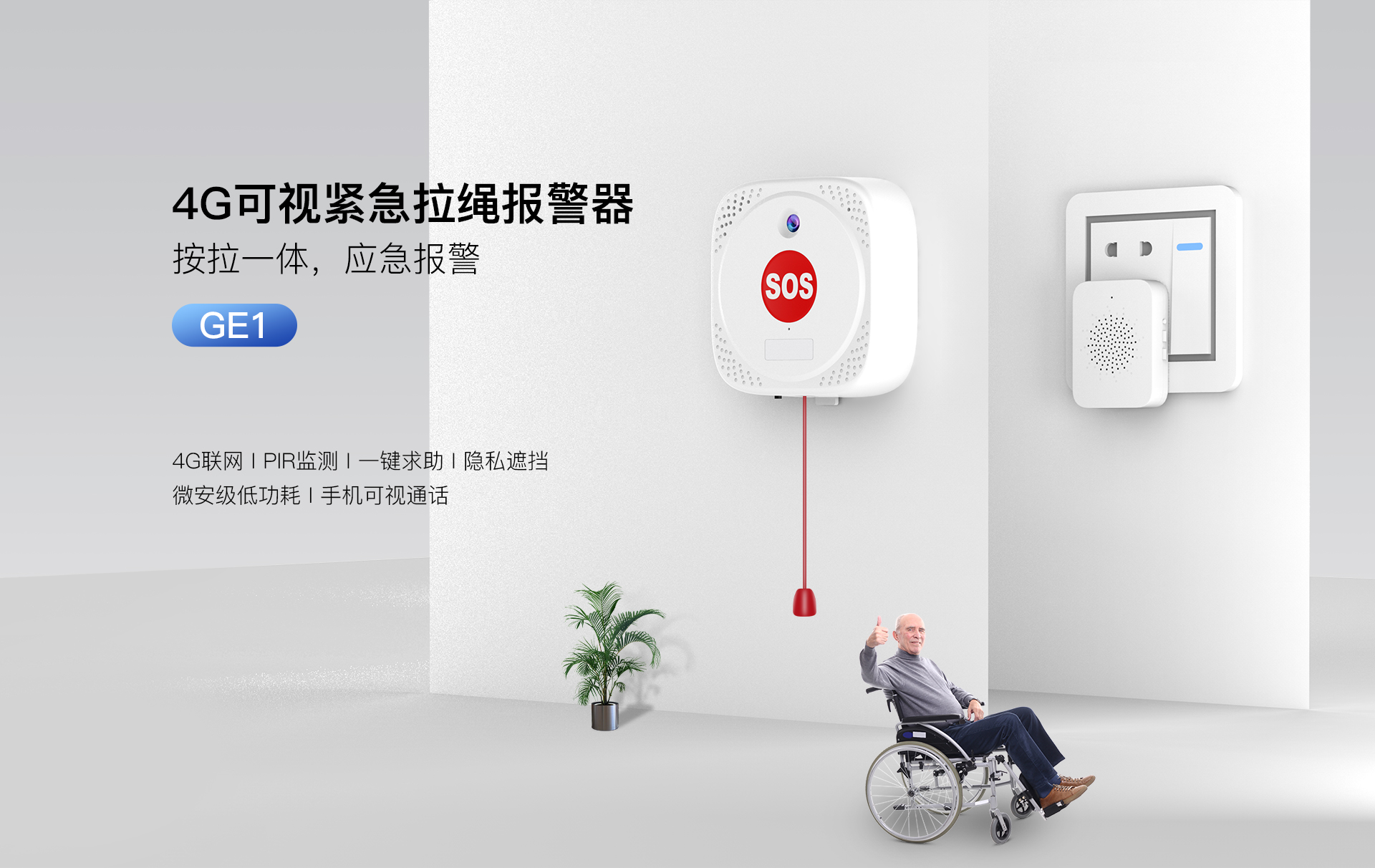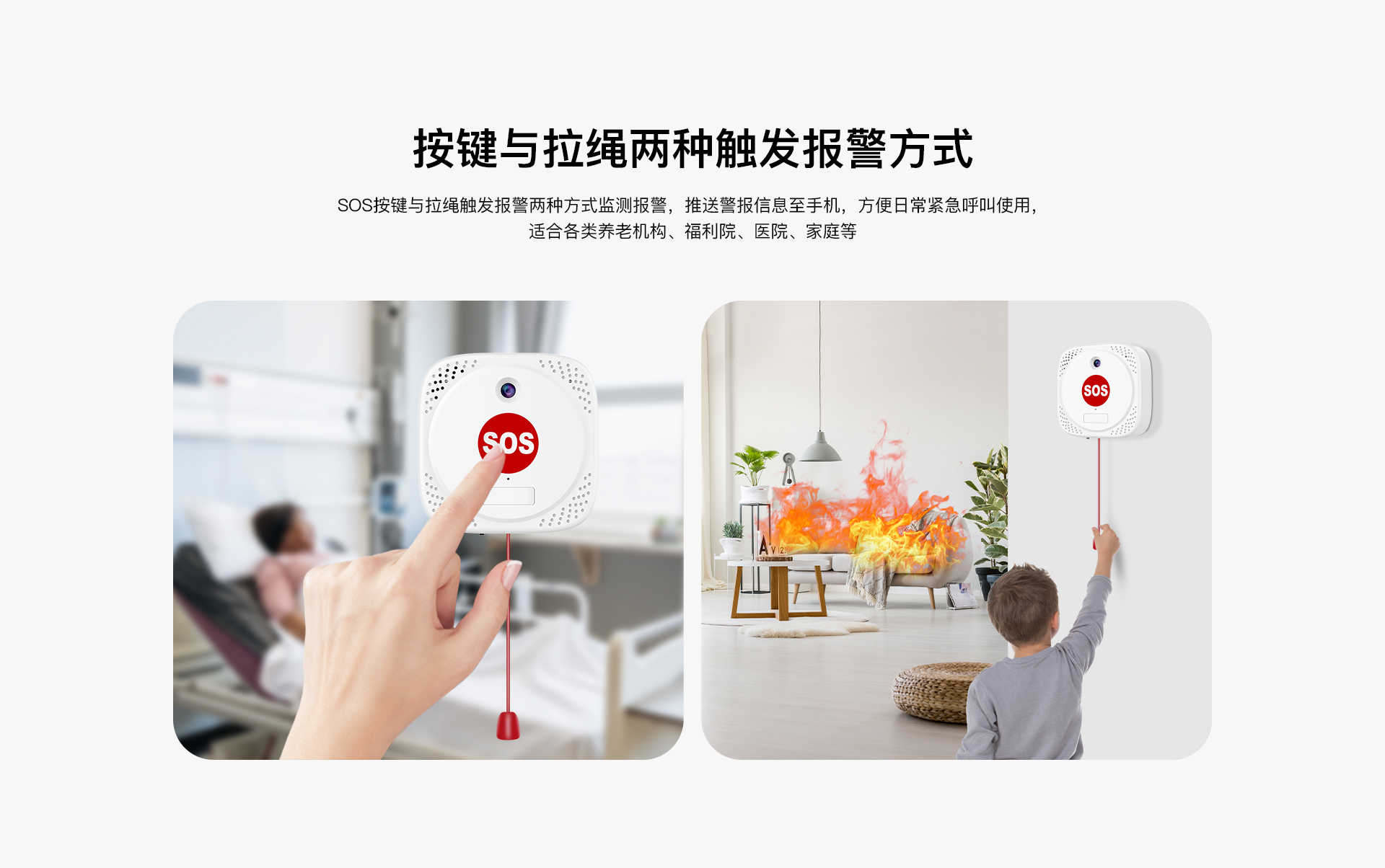 适老化设计:物理SOS按键+拉绳双触发设计,安装高度可调。