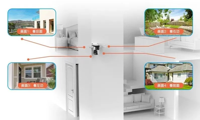 CS995DR双镜头摄像机:180°广角覆盖门口和走廊两不个同区域,手机APP同时呈现两个区域的高清画面。