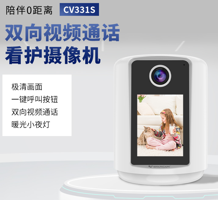 CV331S双向视频通话摄像机:实时查看老人/儿童状态,支持远程双向视频通话陪护,适合家庭住宅等重要场景。