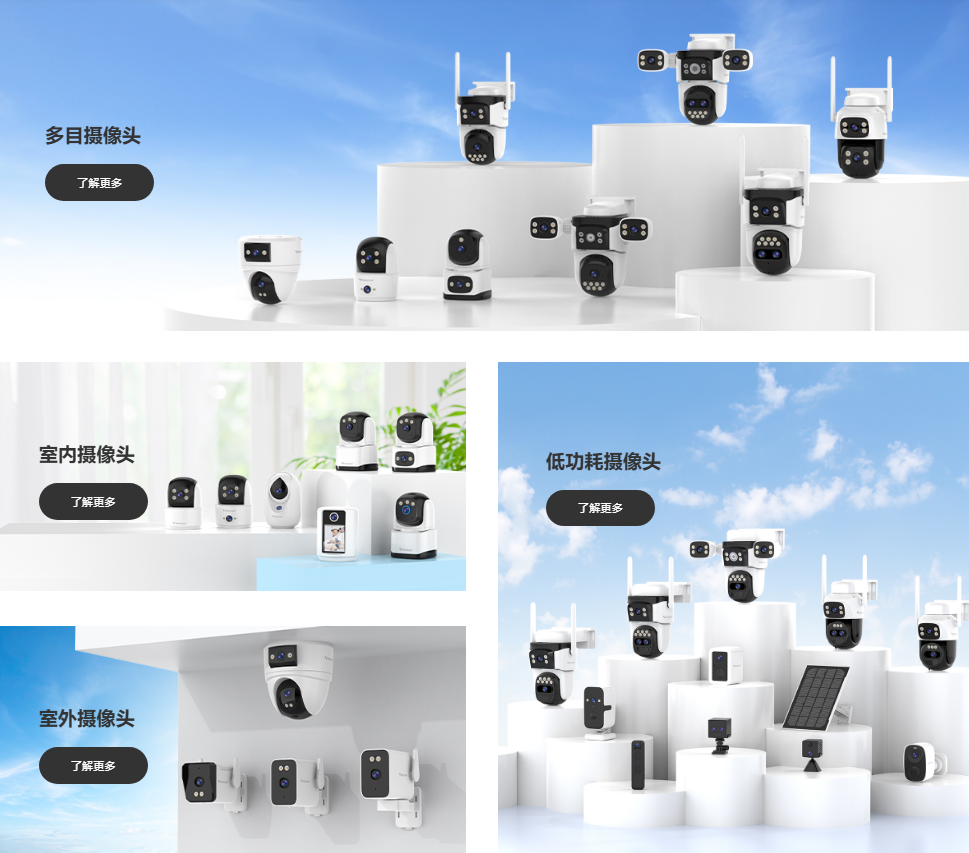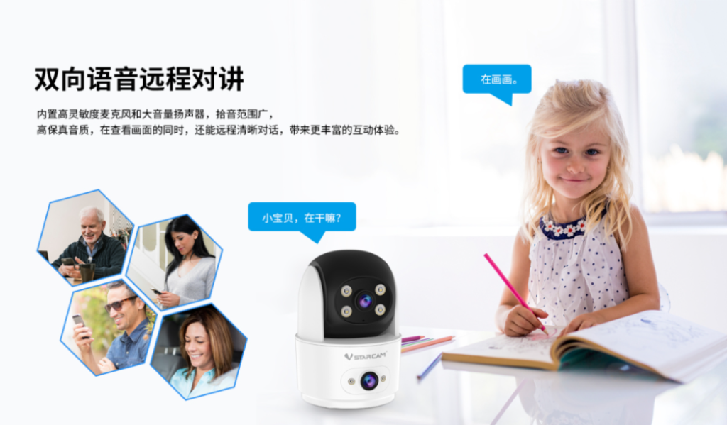 室内云台系列CS995DR、CS996DR支持多语言实时互动,双云台旋转实现360°无盲区看护,成为商场、家居、连锁酒店等重点场景关注的产品。