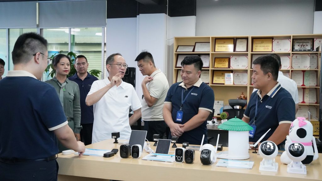 2025年7月18日,江西省赣州市兴国县委书记李贱贵率队赴深圳市小鹰视界集团考察调研,实地参观了企业智慧展厅、研发中心与华体会化生产线,现场体验了AI火灾预警系统、社区三维安防管理平台等核心技术演示。小鹰视界旗下子公司谢董、王总及董事长助理骆总全程陪同,并就相关技术应用进行了详细讲解。
