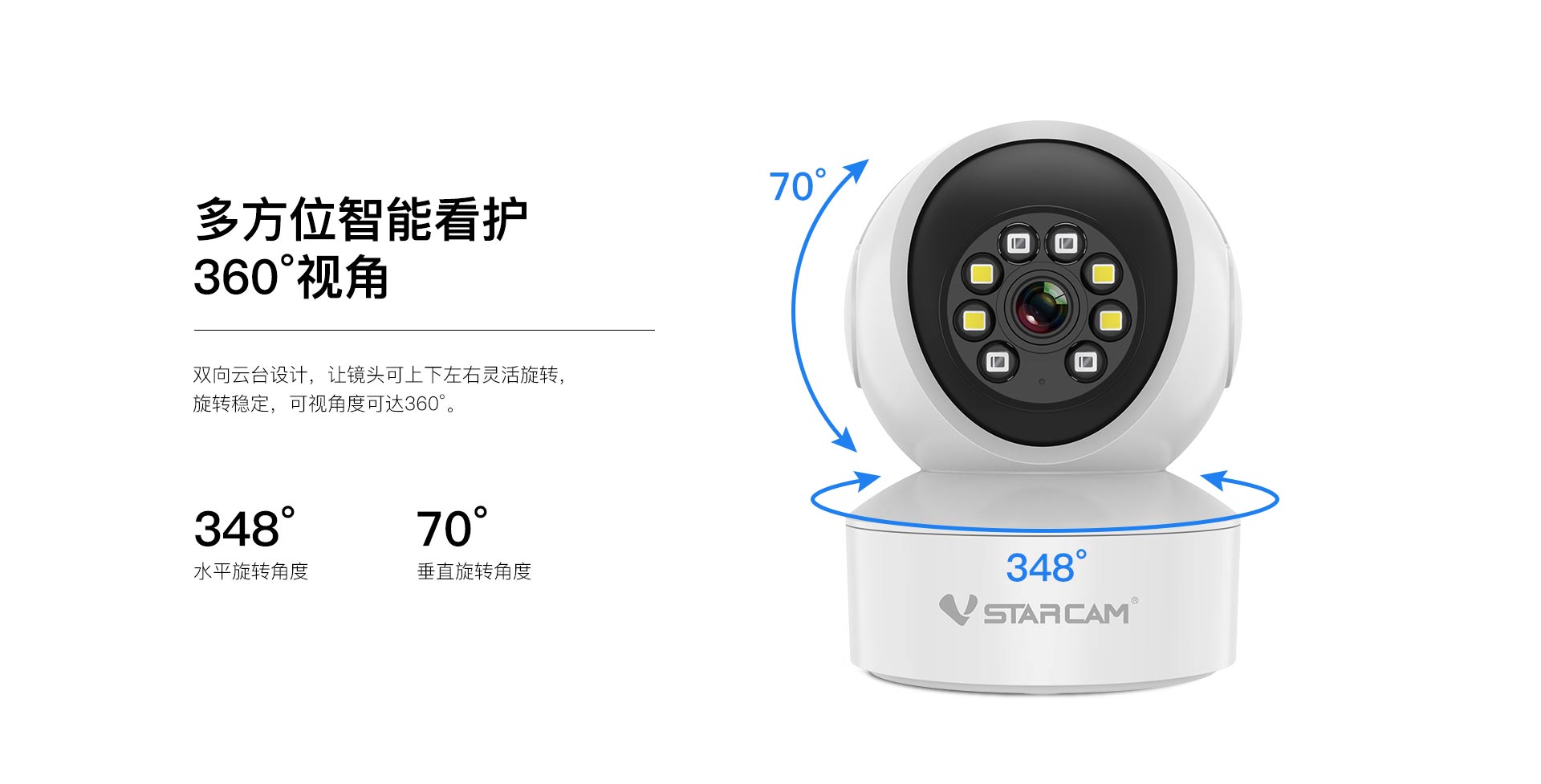 | 云台 | 旋转角度 | 水平348°/垂直70° |