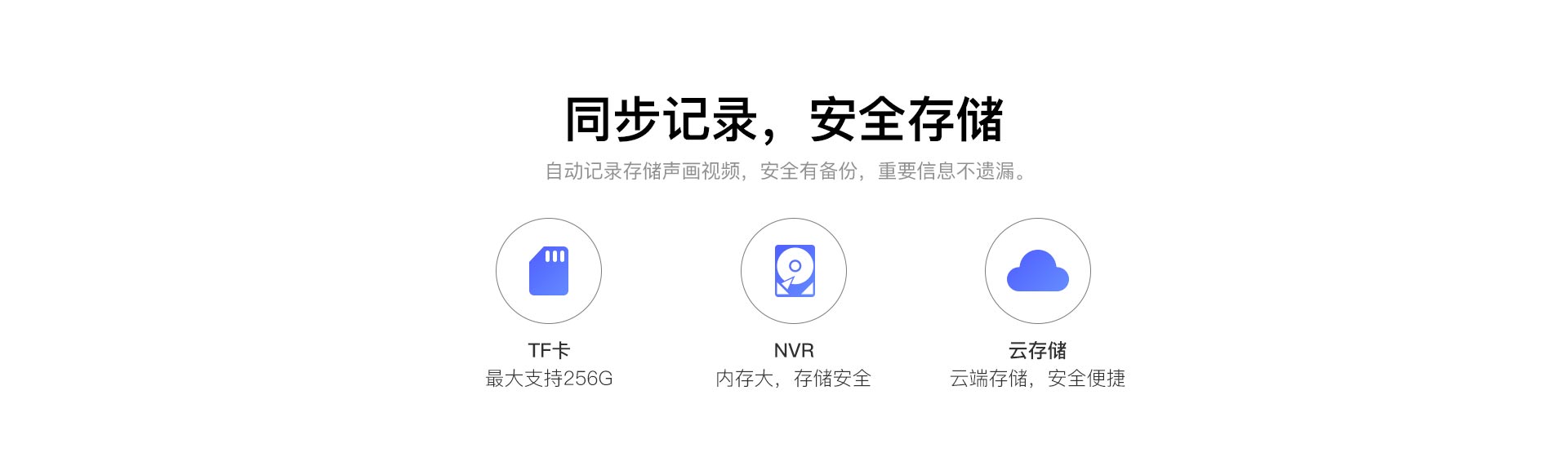 | 存储 | 存储功能 | 支持T-Flash卡(最高支持256GB);云存储;NVR;NAS |