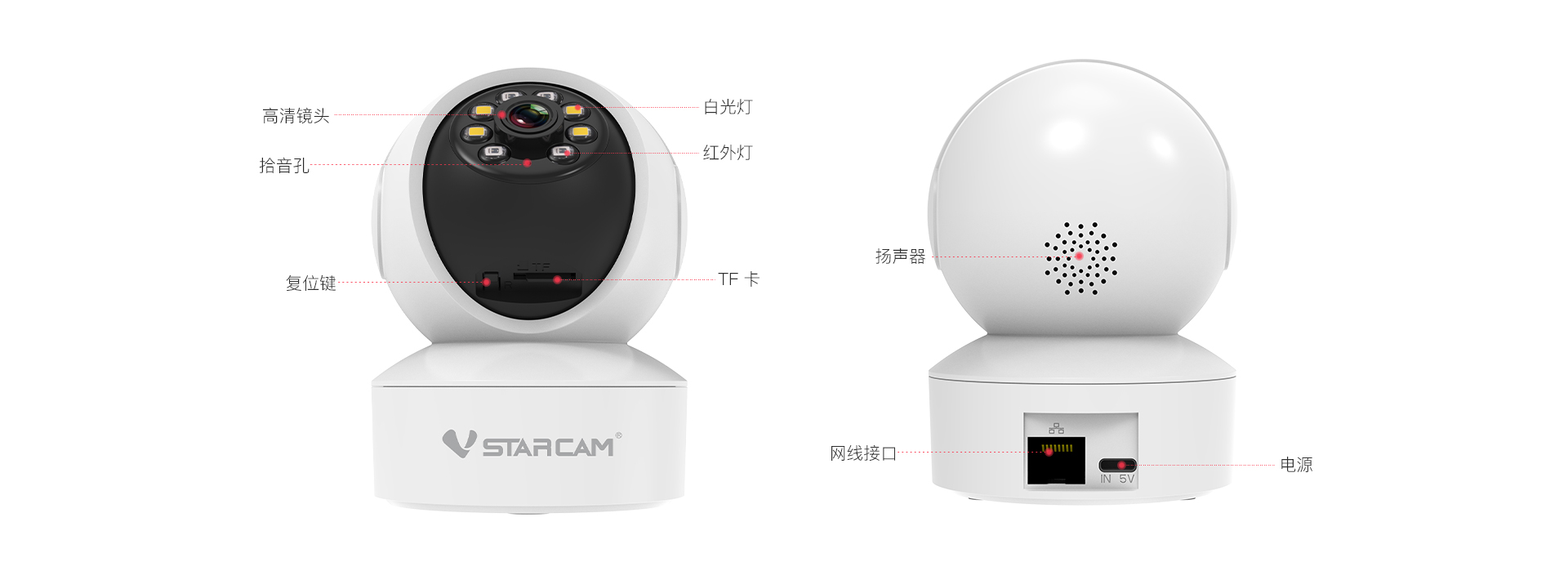 | 功耗 | 额定功率:2.6W (红外灯开启)/最大功率:5.8W (云台开启) | |