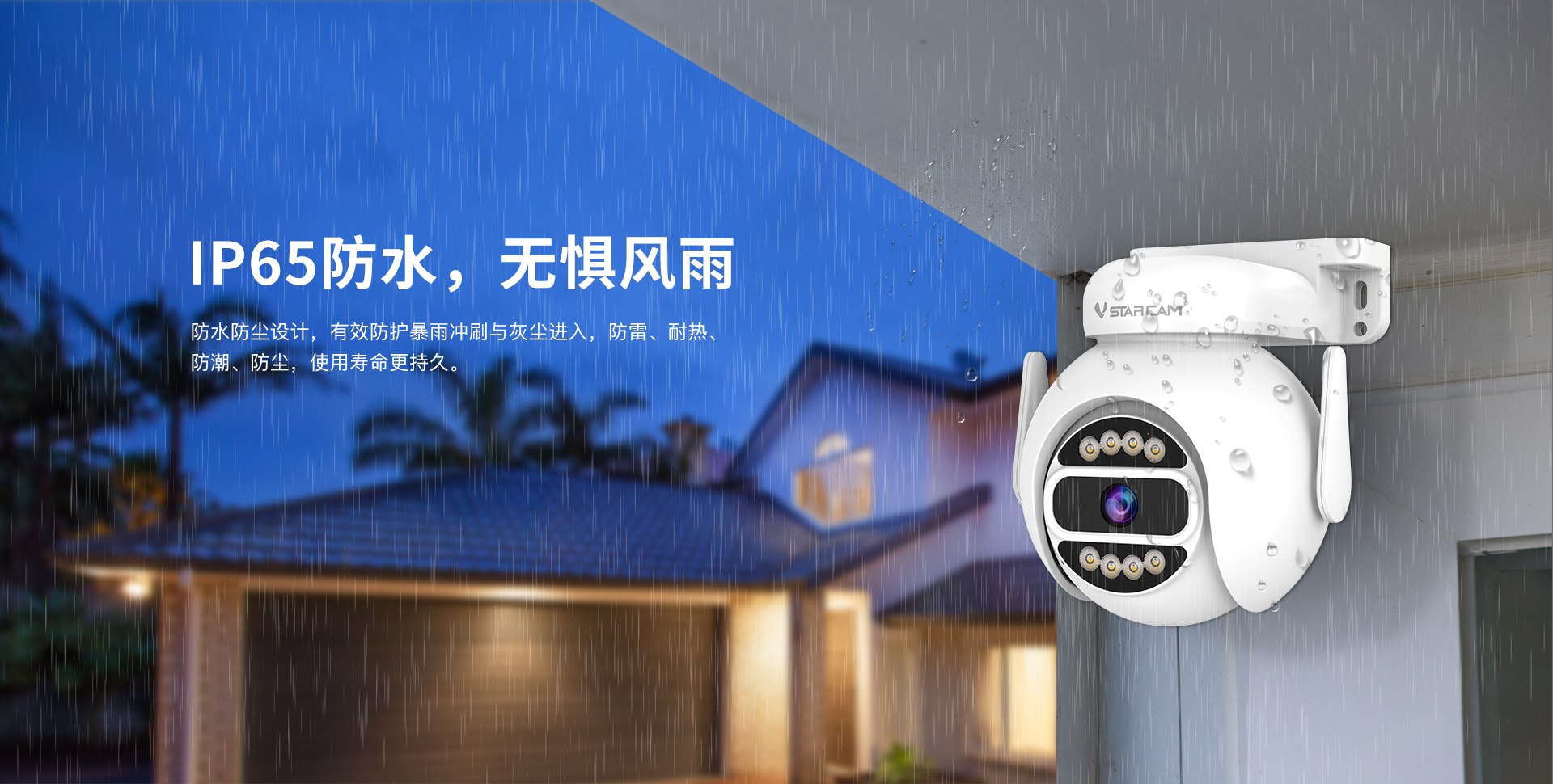 | 夜视 | 双滤光片自动切换,8颗白光灯, 8颗红外灯,照射距离15~20米 | |