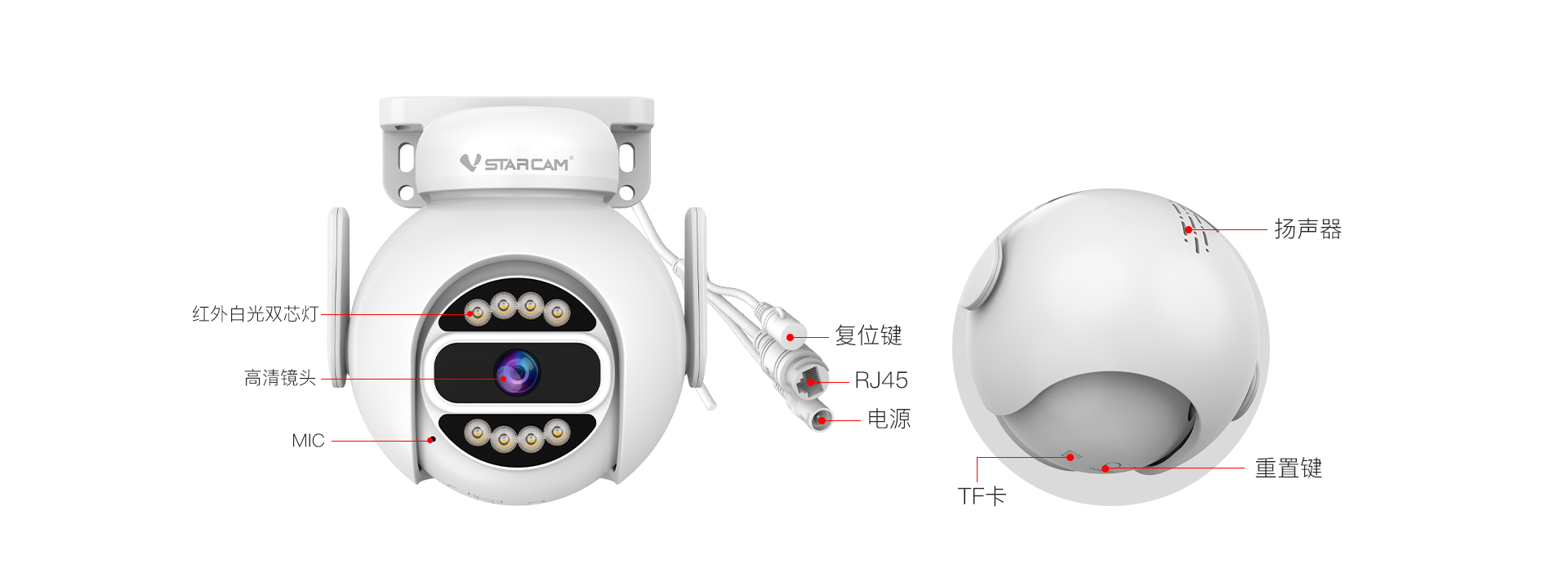 | 报警 | 报警检测 | 支持移动侦测,人形侦测,人形框定,人形追踪,警笛报警音,区域侦测 |
