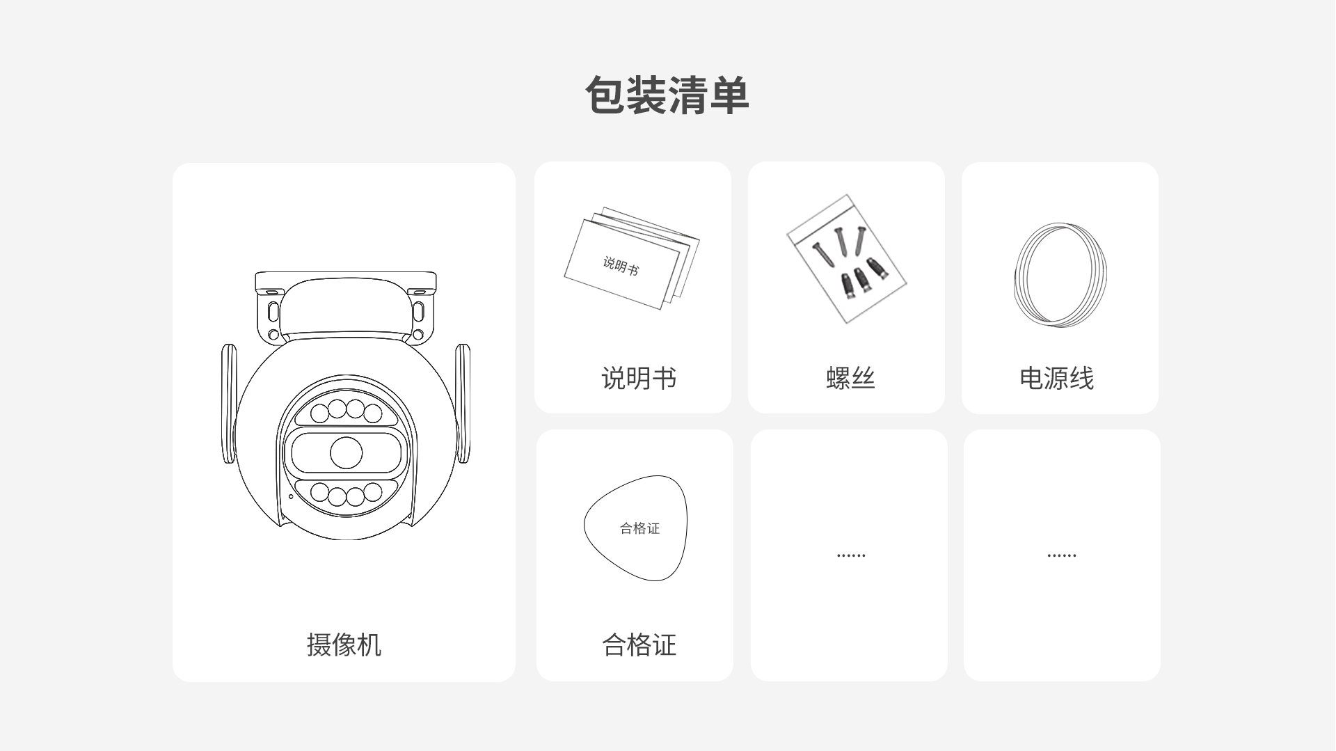 | 包装清单 | 摄像机,螺丝包,警示贴,螺丝刀,说明书 | |