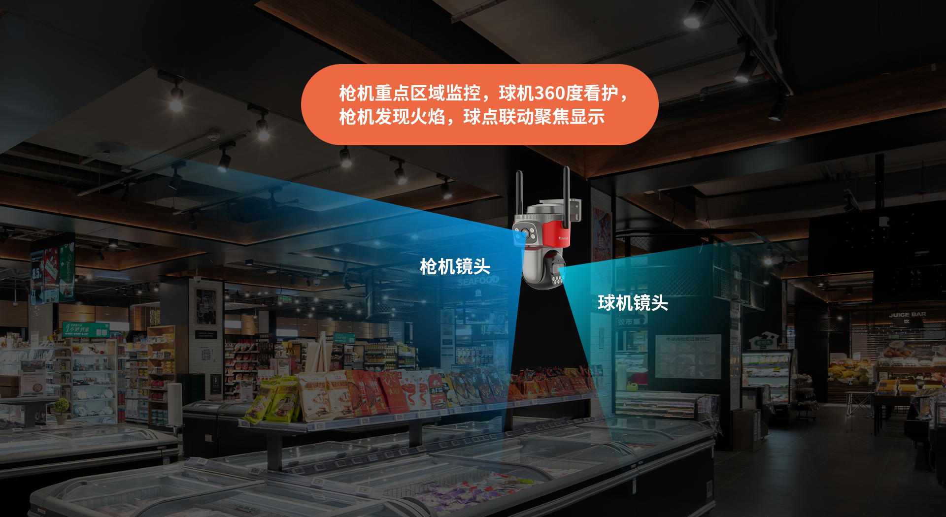 | ✮AI功能:支持明火检测,火点识别、车辆识别、宠物检测、区域入侵 | ||