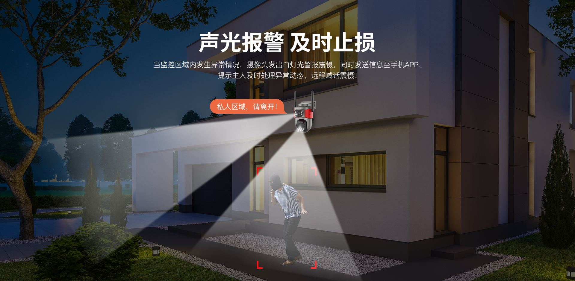| 报警动作 | 摄像机:报警语音提示;报警消息实时推送; | |