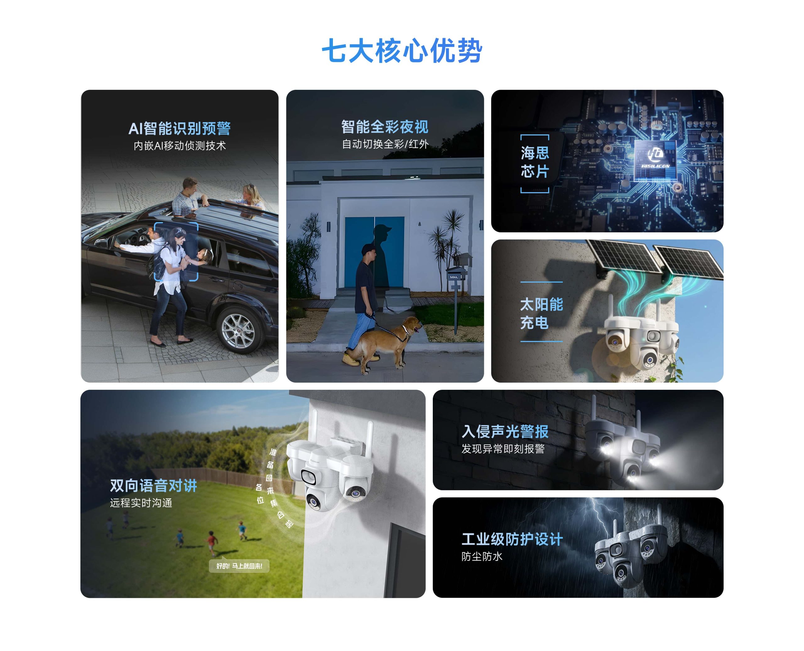 | ✮超大广角监控,六电机云台操控,灵活旋转,360度无遮挡 |