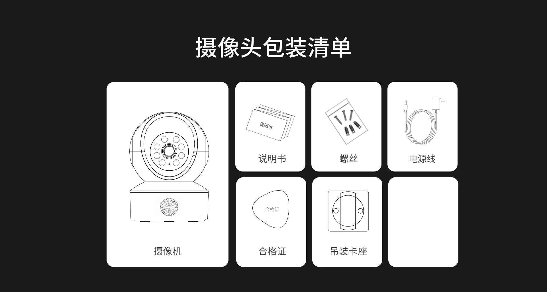 | 包装清单 | 摄像机、螺丝包,说明书 | |