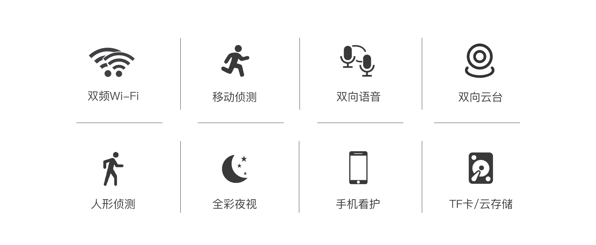 | 报警 | 报警检测 | 支持移动侦测,人形侦测,人形框定,区域侦测,人形追踪 |