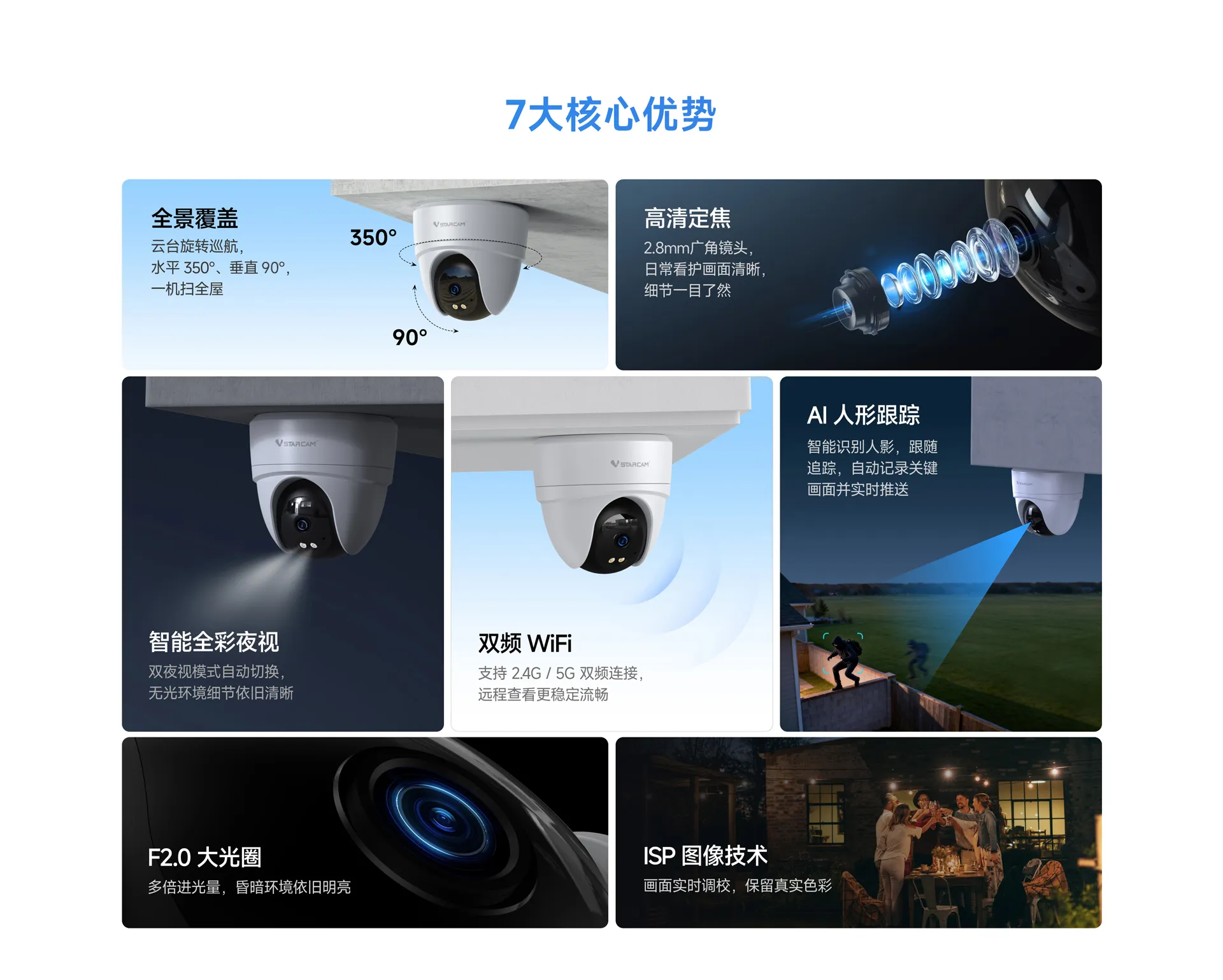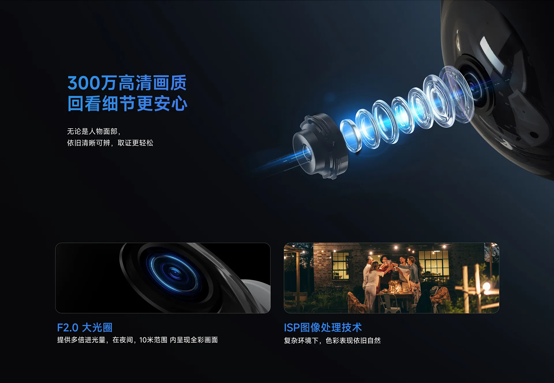 | ✮F2.0大光圈,多倍进光量,夜视更清晰 |
