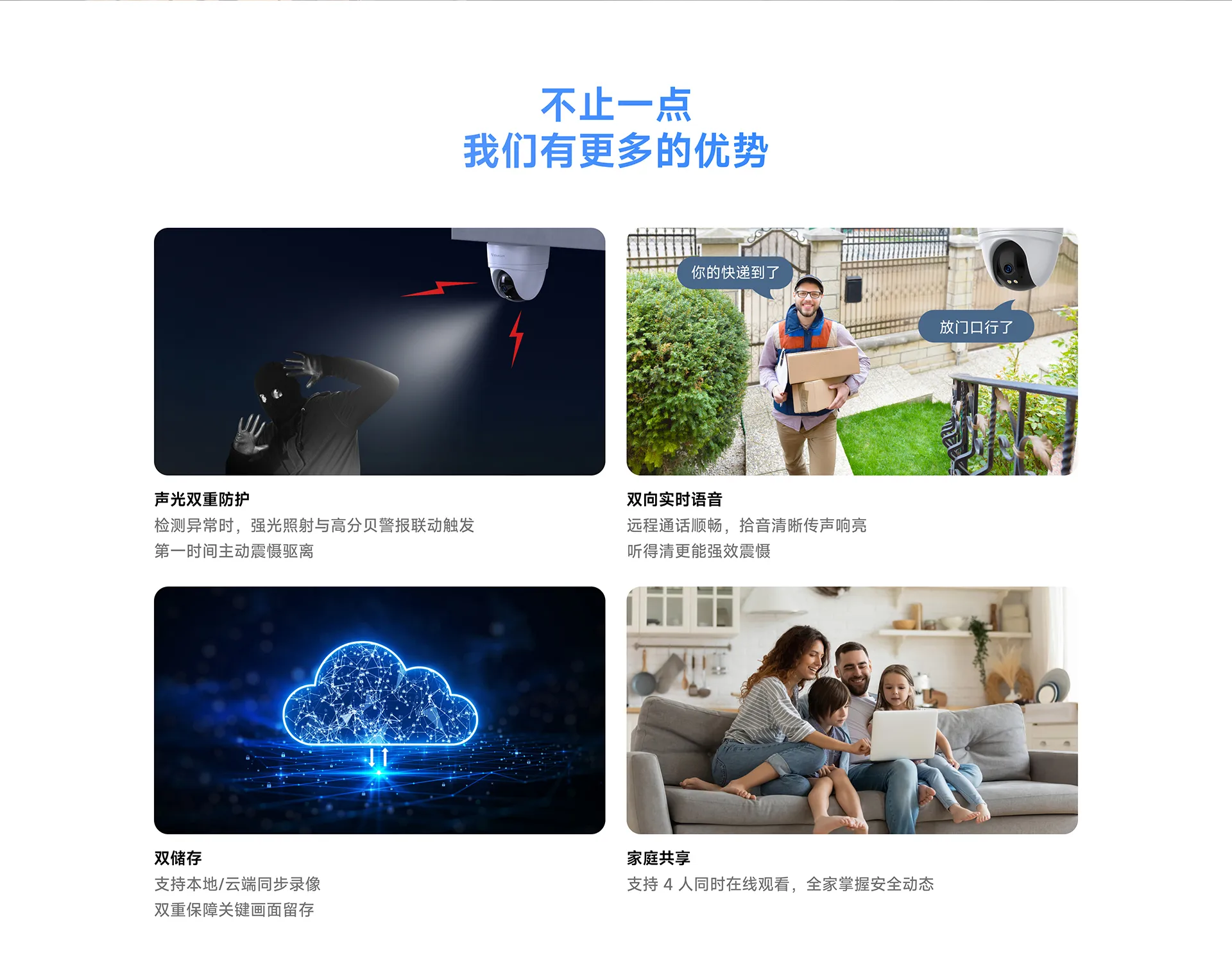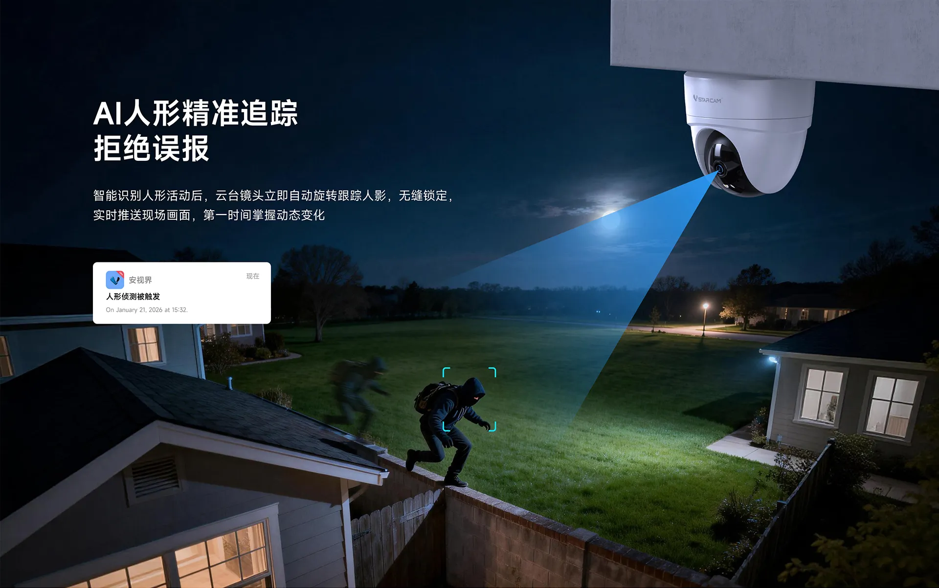 支持移动侦测,人形侦测,人形框定,区域侦测,人形追踪 |