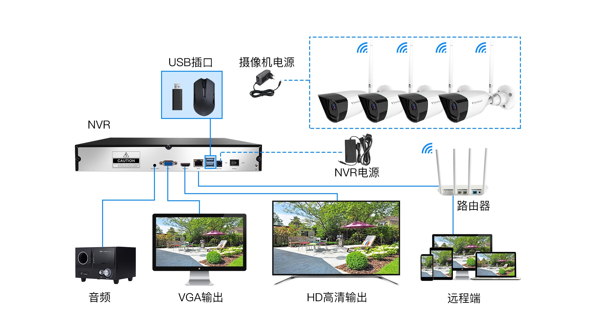 | 视音频输出 | HDMI 输出 | 1 路,HDMI接口;最大分辨率:1920x1080/60Hz |