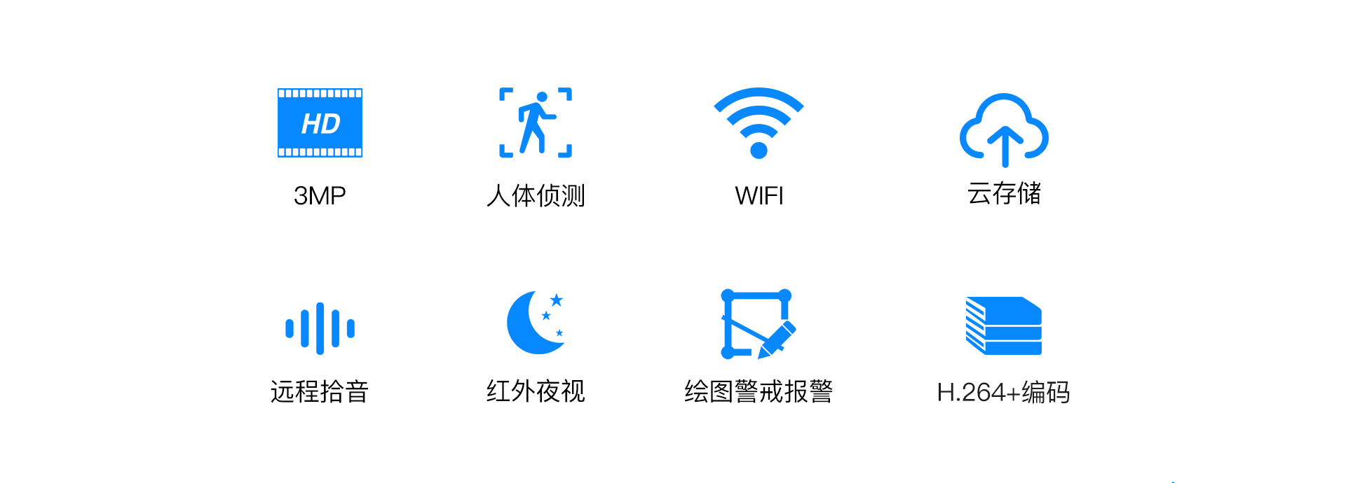 | 报警 | 报警检测 | 支持移动侦测,人形侦测,人形框定,离岗监测,区域侦测 |