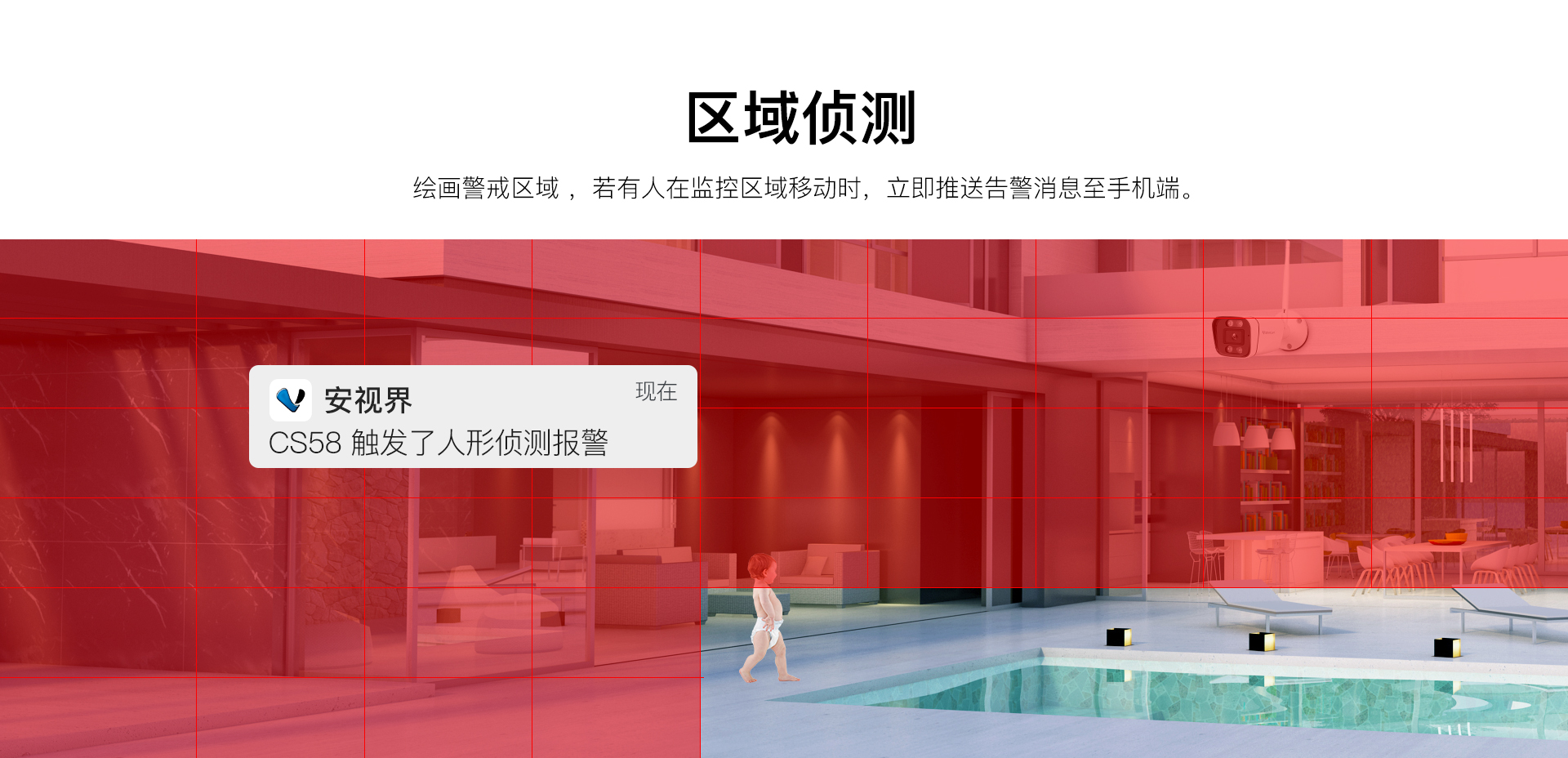 支持移动侦测,人形侦测,人形框定,区域侦测 |